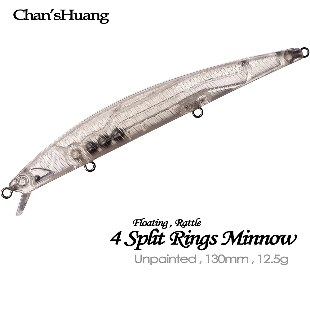 Chan'sHuang-Cebo en blanco sin pintar, 130mm, 12,5G, G, 4 anillos divididos, sonajero, pececillo, aparejos de pesca artificiales hechos a mano DIY