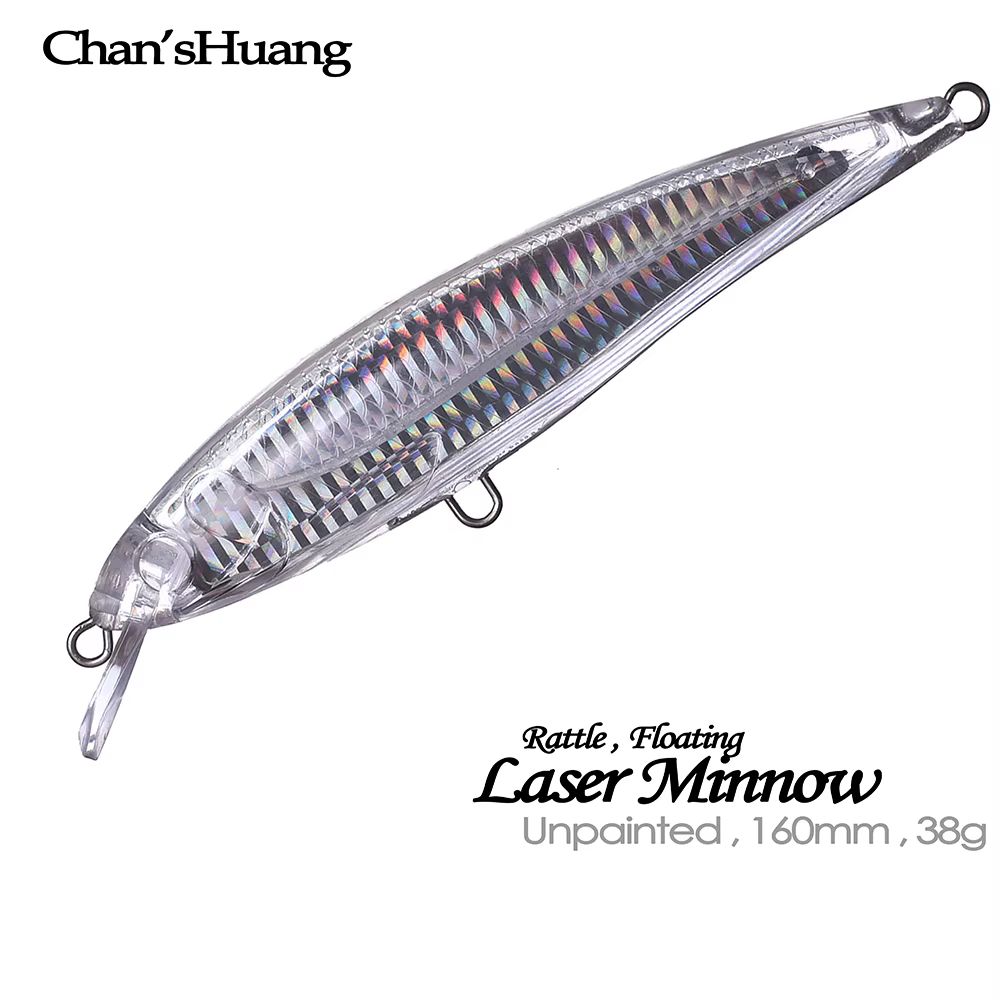Chan'sHuang-Señuelo de pesca de alta tensión, cebo en blanco sin pintar, 16cm, 38g, alambre de pececillo láser, para soportar el cuerpo