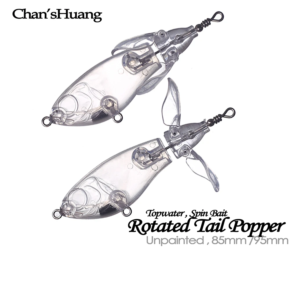 Chan'sHuang-Cebo en blanco sin pintar, 10 piezas, 85mm/95mm, cola giratoria, Popper, Señuelos de Pesca artificiales DIY