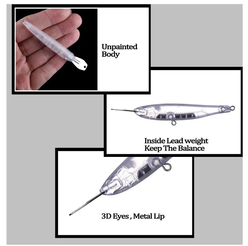 Chan'sHuang-Cebo en blanco sin pintar, 10 piezas, 90mm, 7,5g, labio de Metal de hundimiento silencioso, pececillo, señuelo de pesca Artificial artesanal