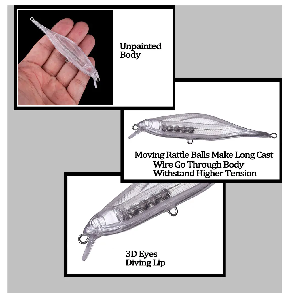 Chan'sHuang-Cebo en blanco sin pintar de 20 piezas, 10,5 cm, 10,3g, largo, alambre para pececillos, resiste el cuerpo, señuelo de pesca de mayor tensión