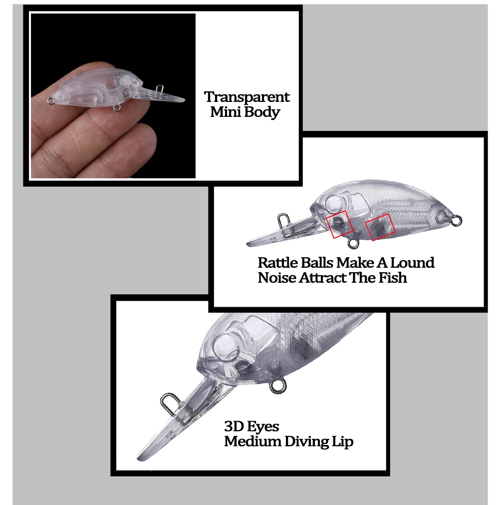 "Chan'sHuang, cebo en blanco sin pintar, 55mm, 3,9G, buzo mediano, Mini Crankbait flotante, señuelo de pesca Artificial hecho a mano DIY