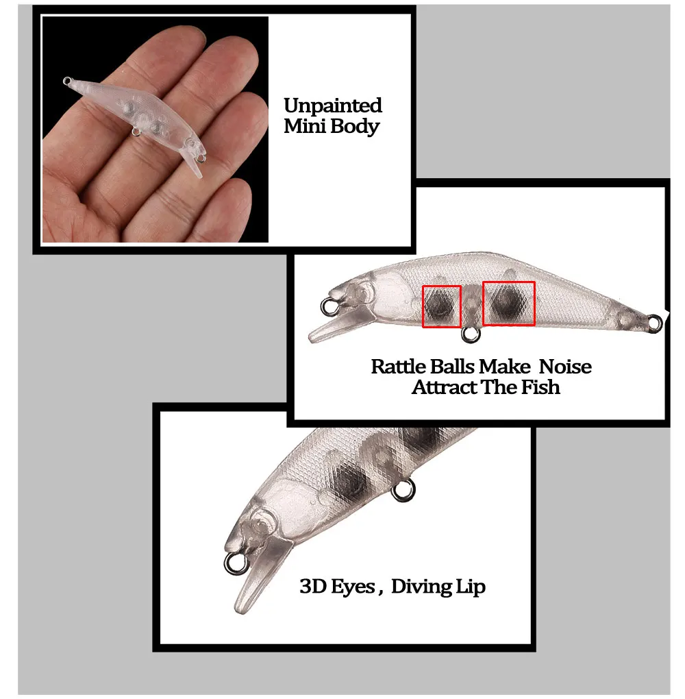 Chan'sHuang, cebo en blanco sin pintar, 55mm, 3G, Wobblers de hundimiento, Mini Minnow, aparejos de señuelo de pesca artificiales hechos a mano DIY