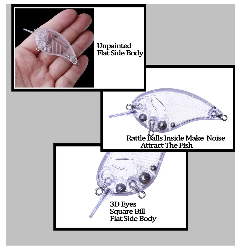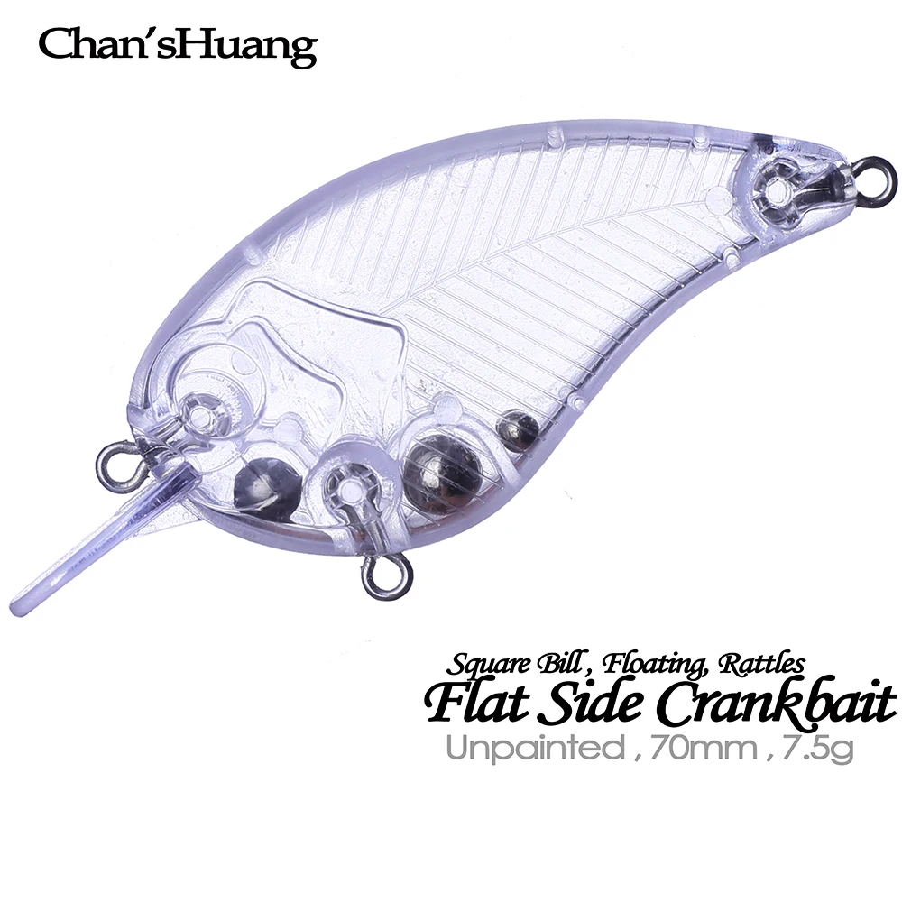 Chan'sHuang, 20 Uds., cebo en blanco sin pintar, 70mm, 7,5g, billete cuadrado flotante, sonajeros de cuerpo lateral plano, señuelo de pesca Artificial Crankbait