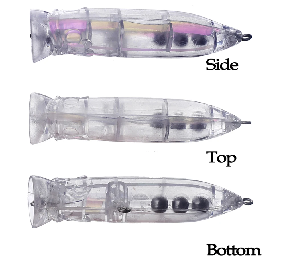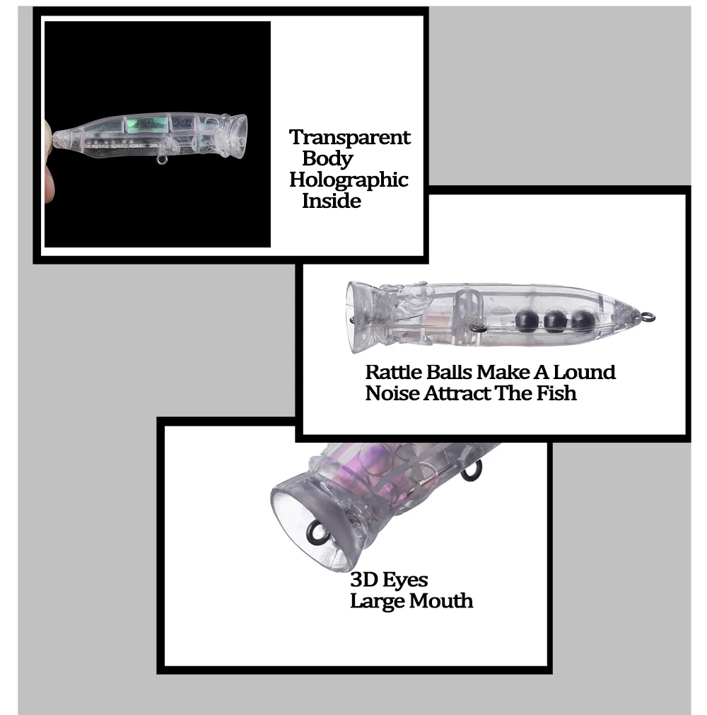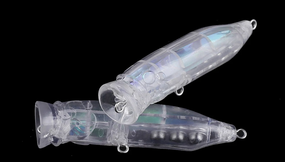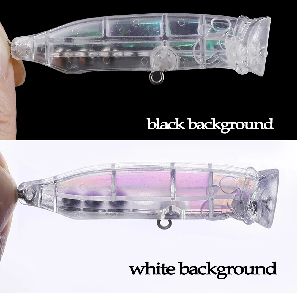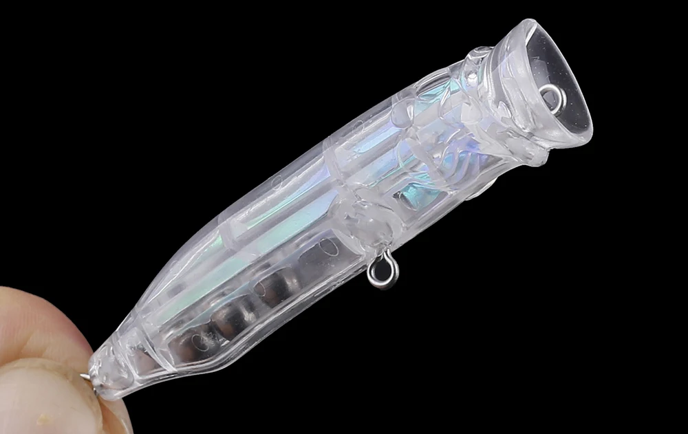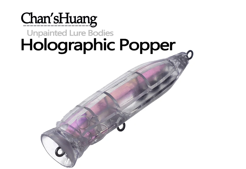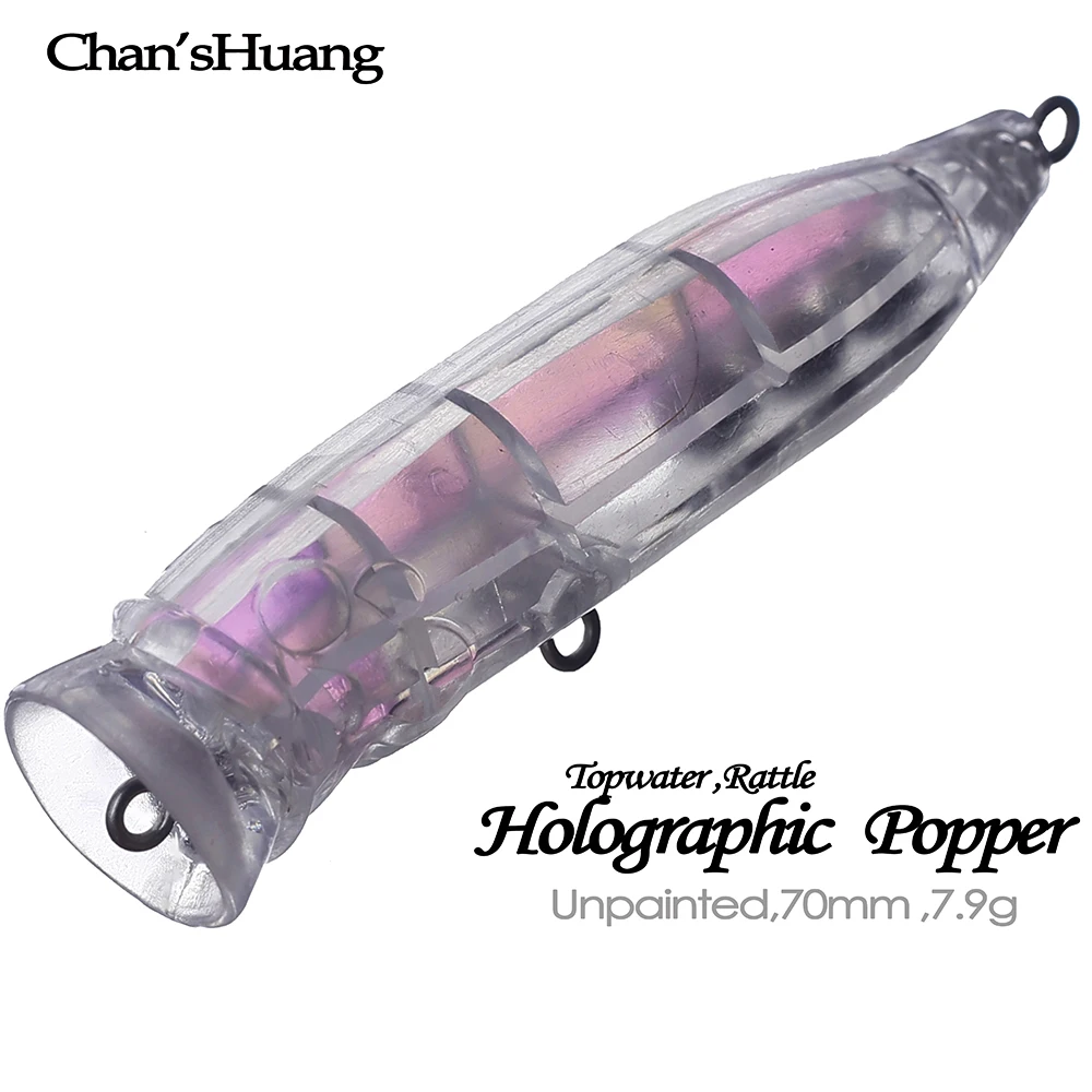 Chan'sHuang-Cebo en blanco sin pintar, 20 piezas, 70mm, 7,9g, Topwater, boca grande, Popper holográfico, sonajeros flotantes, Señuelos de Pesca DIY