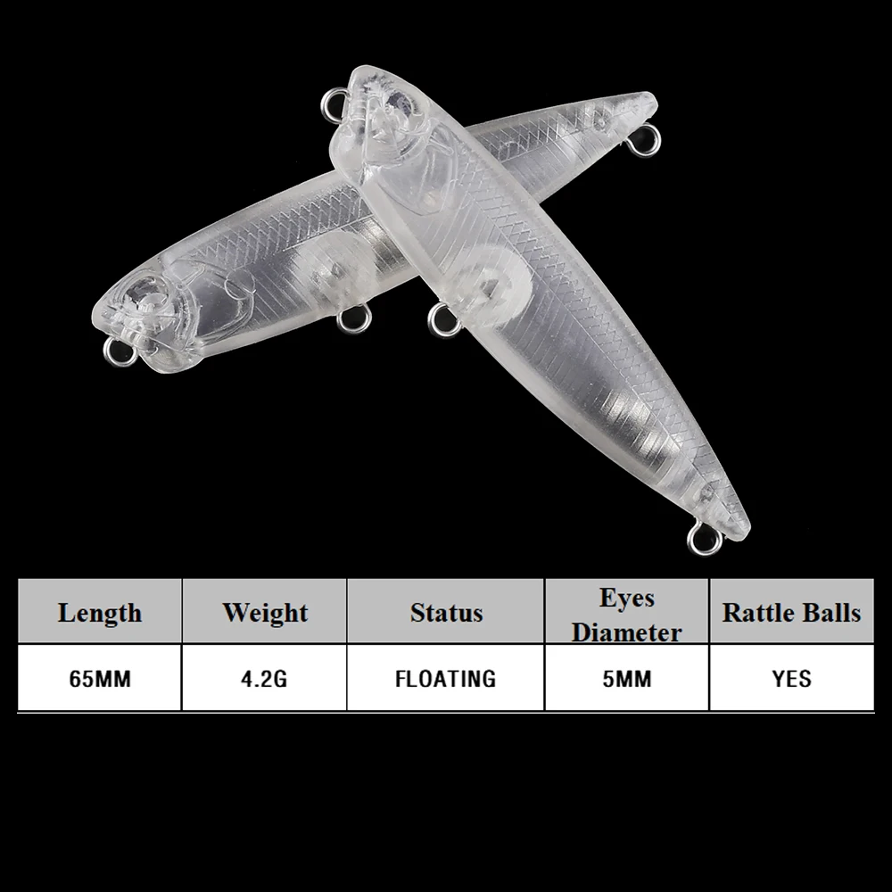 Chan'sHuang-Cebo en blanco sin pintar de 20 piezas, cebo flotante de 65mm y 4,2g, lápiz sonajero de superficie, aparejo de señuelo de pesca Artificial hecho a mano