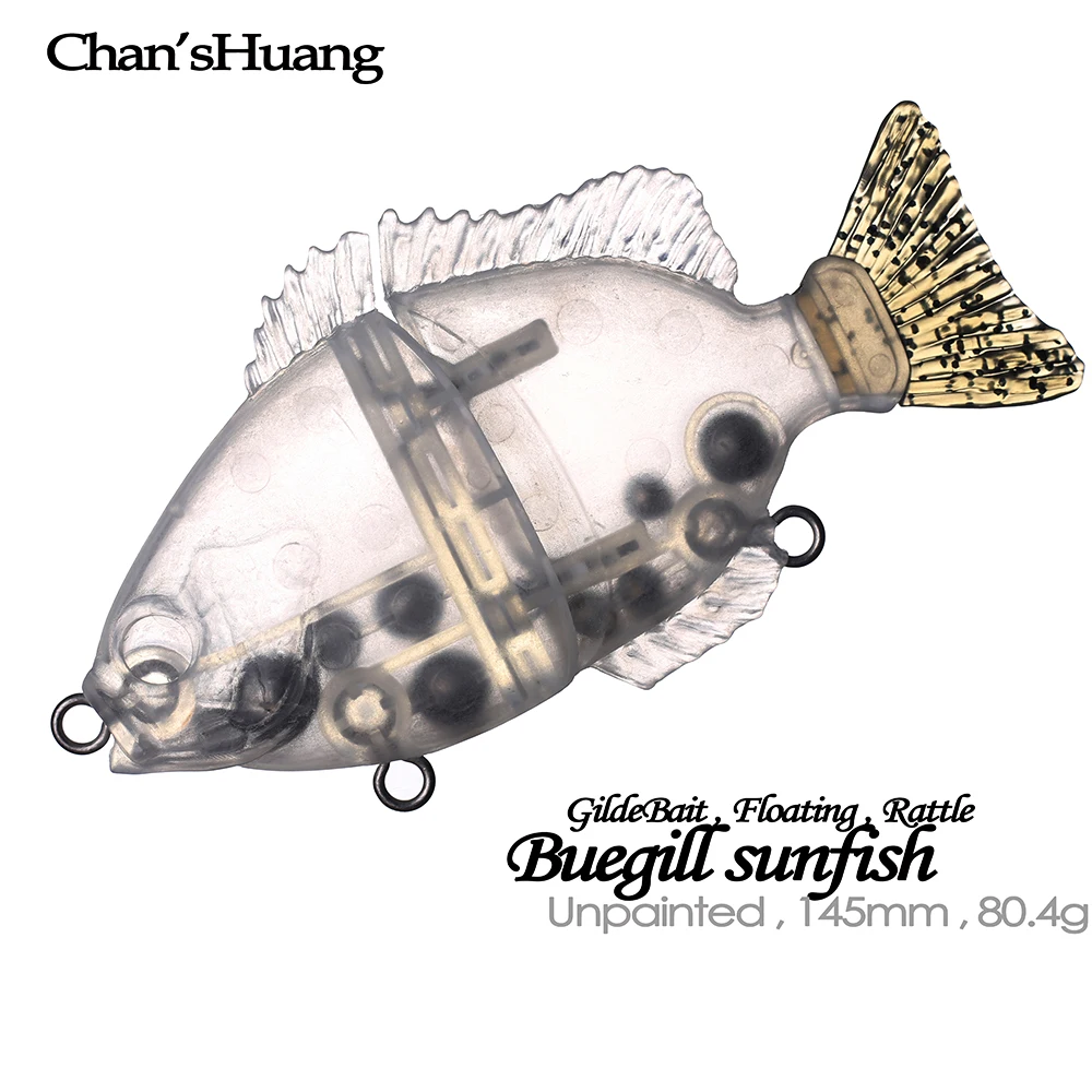 Chan'sHuang-Cebo en blanco sin pintar, 3 piezas, 14,5 cm, 80,4g, sonajero flotante, Swimbait, cola suave, Artificial, hecho a mano