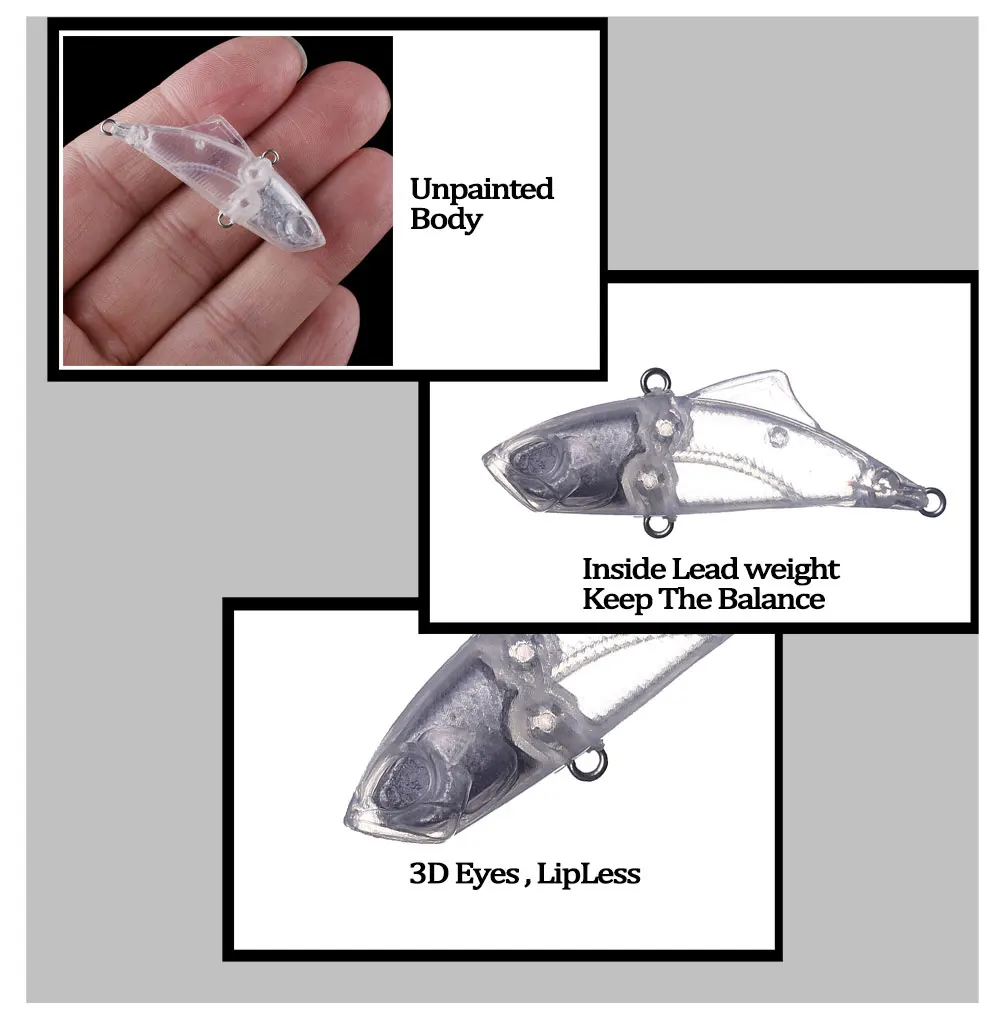 Chan'sHuang, cebo en blanco sin pintar de 30 piezas, 45mm, 5,3G, hundimiento silencioso, Crankbait sin labios, Mini VIB, señuelo de pesca Artificial DIY