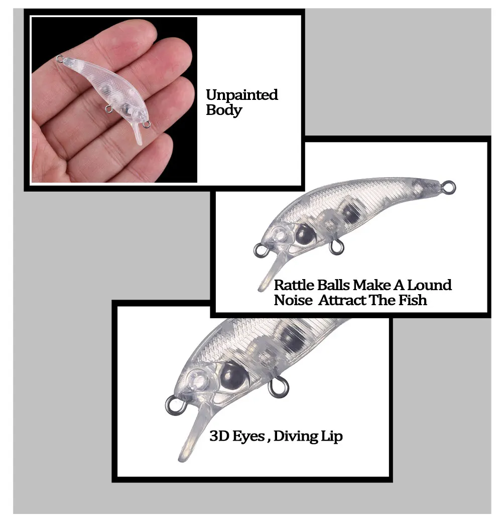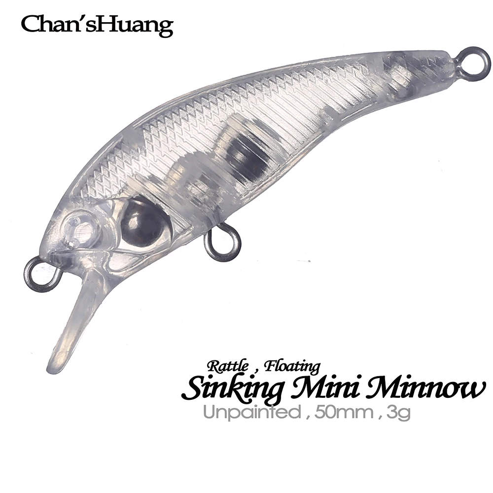 Chan'sHuang-Cebo en blanco sin pintar, 30 piezas, 5cm, 3g, sonajero que se hunde, piscardo, señuelo de pesca Artificial hecho a mano