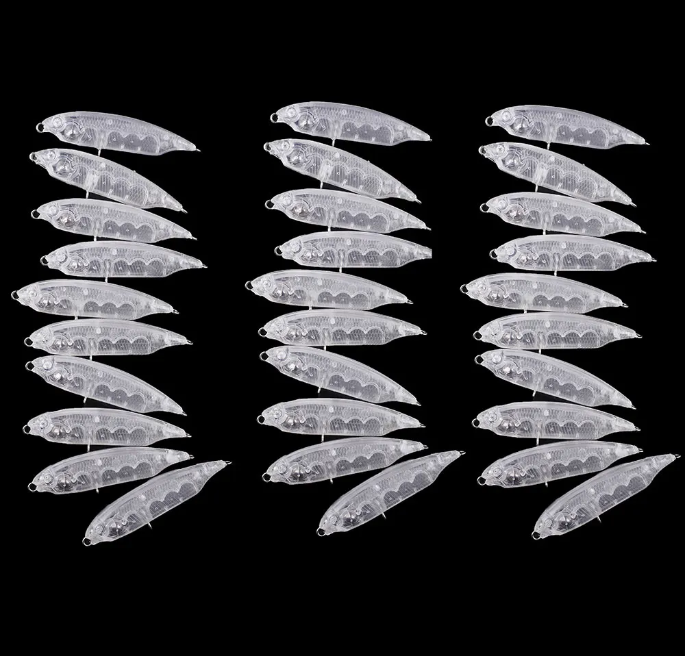 Chan'sHuang-Cebo en blanco sin pintar, 30 piezas, 6cm, 4g, sonajero flotante, lápiz Topwater, señuelo de pesca Artificial hecho a mano
