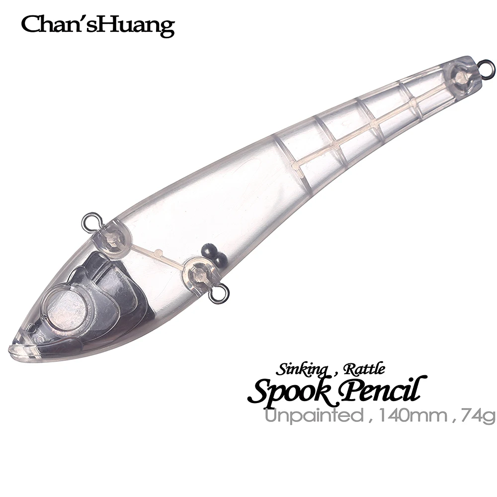 Chan'sHuang-Cebo en blanco sin pintar de 5 piezas, 14cm, 74g, sonajero que se hunde, lápiz, señuelo de pesca Artificial hecho a mano