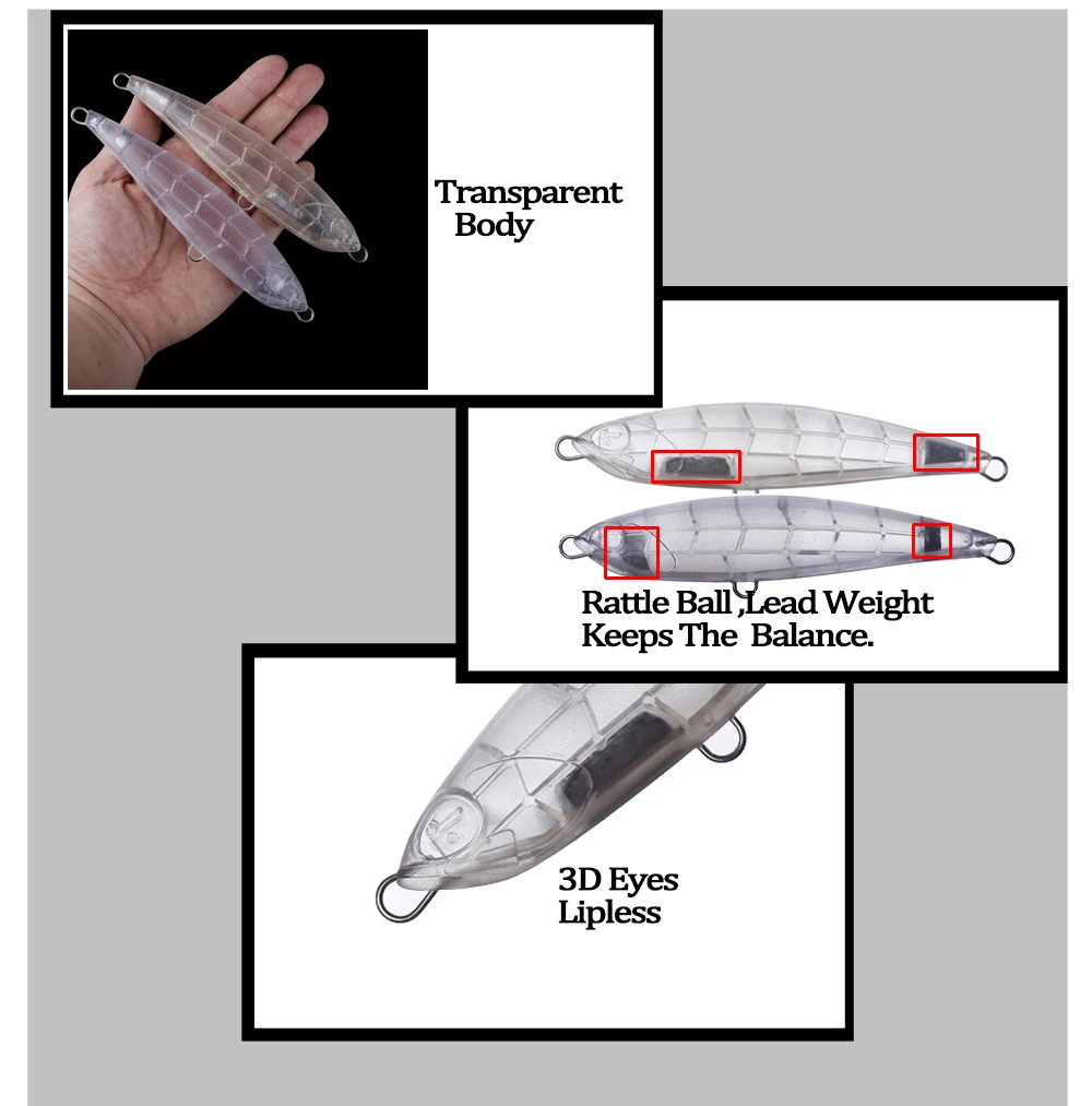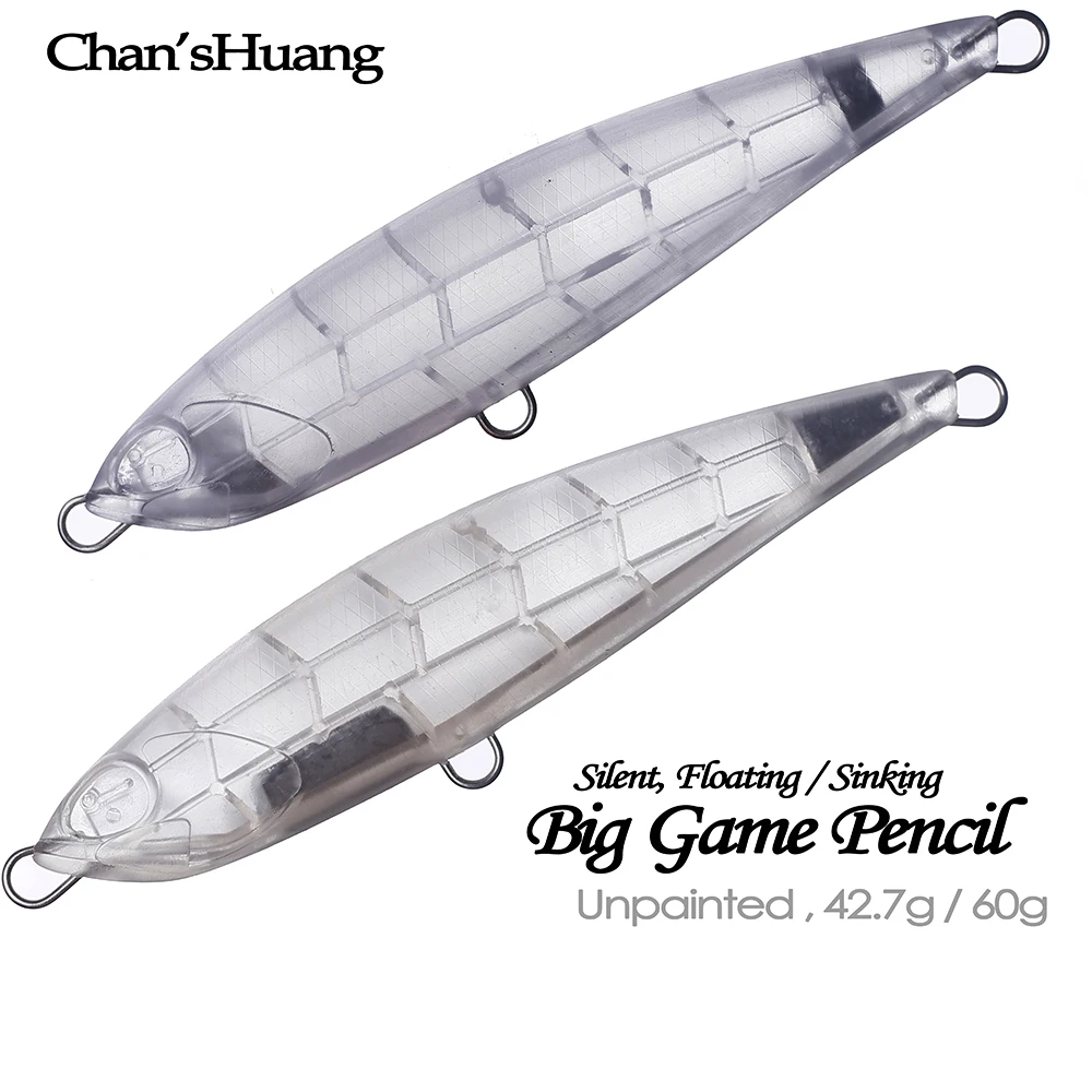 Chan'sHuang-Cebo en blanco sin pintar, 5 piezas, 150mm, 42,7g/60g, lápiz silencioso para juego grande, aparejos de señuelo de pesca artificiales hechos a mano