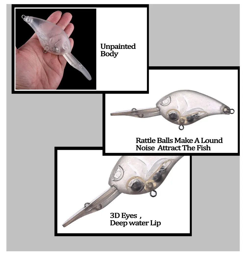Chan'sHuang, cebo en blanco sin pintar de 5 piezas, 155MM, 46G, sonajero flotante en aguas profundas, Crankbait enojado, señuelo de pesca Artificial hecho a mano DIY