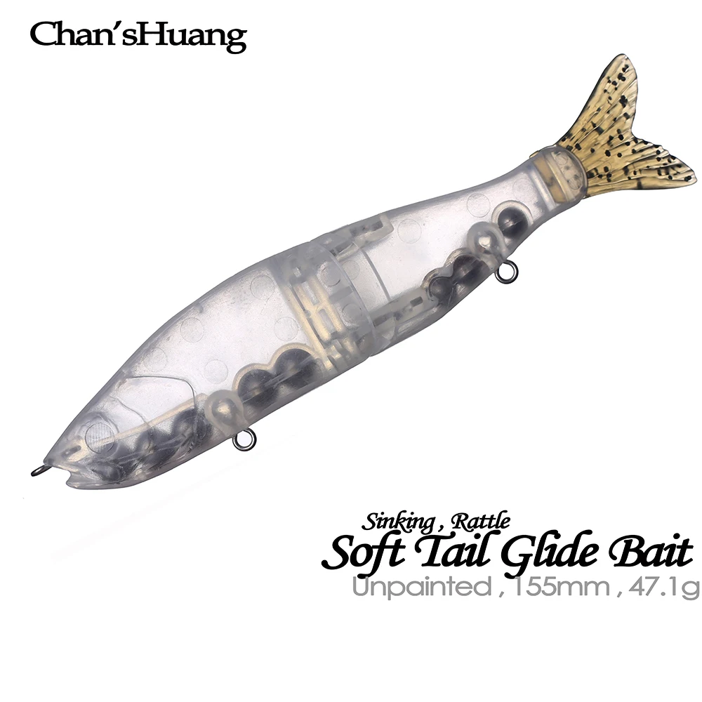 Chan'sHuang-Cebo en blanco sin pintar, 5 piezas, 155mm, 47,1g, sonajero de hundimiento, cola suave, cebo dorado, Swimbait, señuelo de pesca Artificial hecho a mano