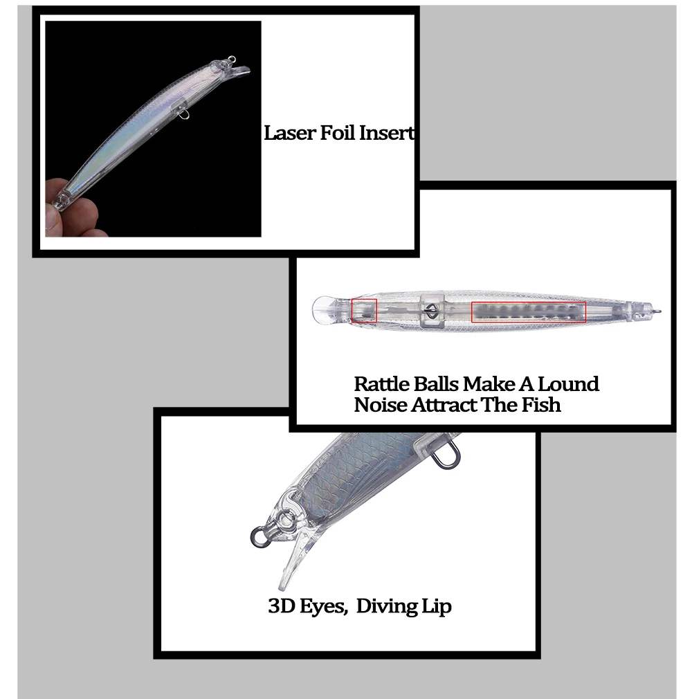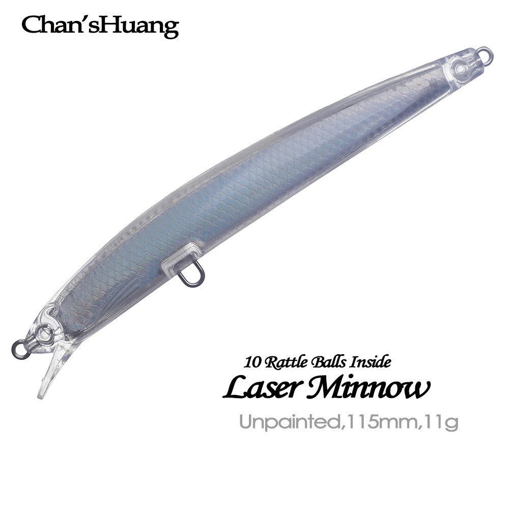 Chan'sHuang cebo en blanco sin pintar, labio de buceo flotante, lámina de pececillo láser en el interior de 115mm, 11g, pesca artificial hecha a mano DIY