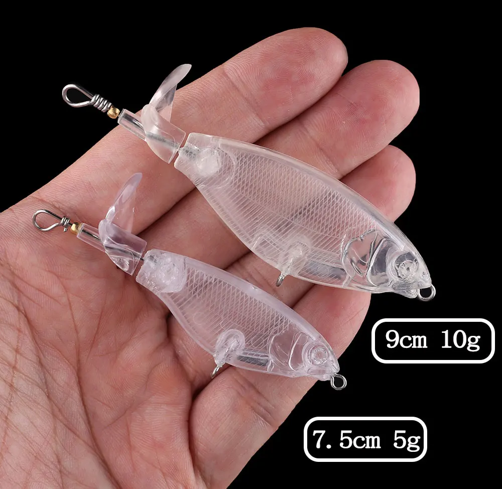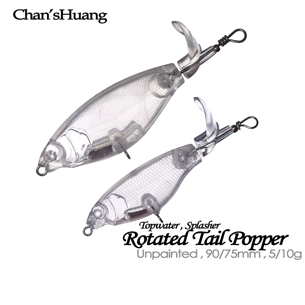 Chan'sHuang, cebo en blanco sin pintar, 5g/10g, Popper de cola giratoria, aparejos de señuelo de pesca artificiales hechos a mano DIY