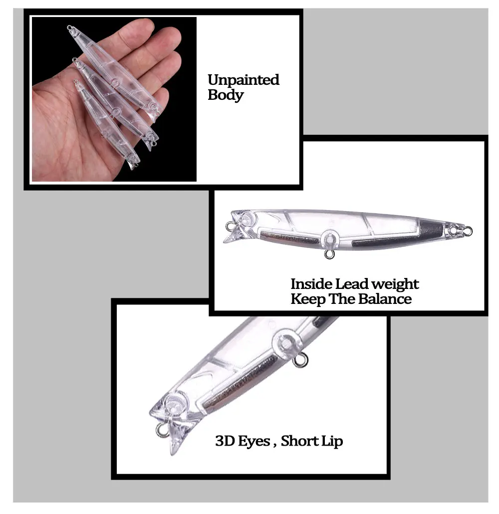Chan'sHuang-Cebo en blanco sin pintar, lápiz silencioso de hundimiento, aparejo de señuelo de pesca Artificial, 7,5/9/9, 5cm, 20 piezas
