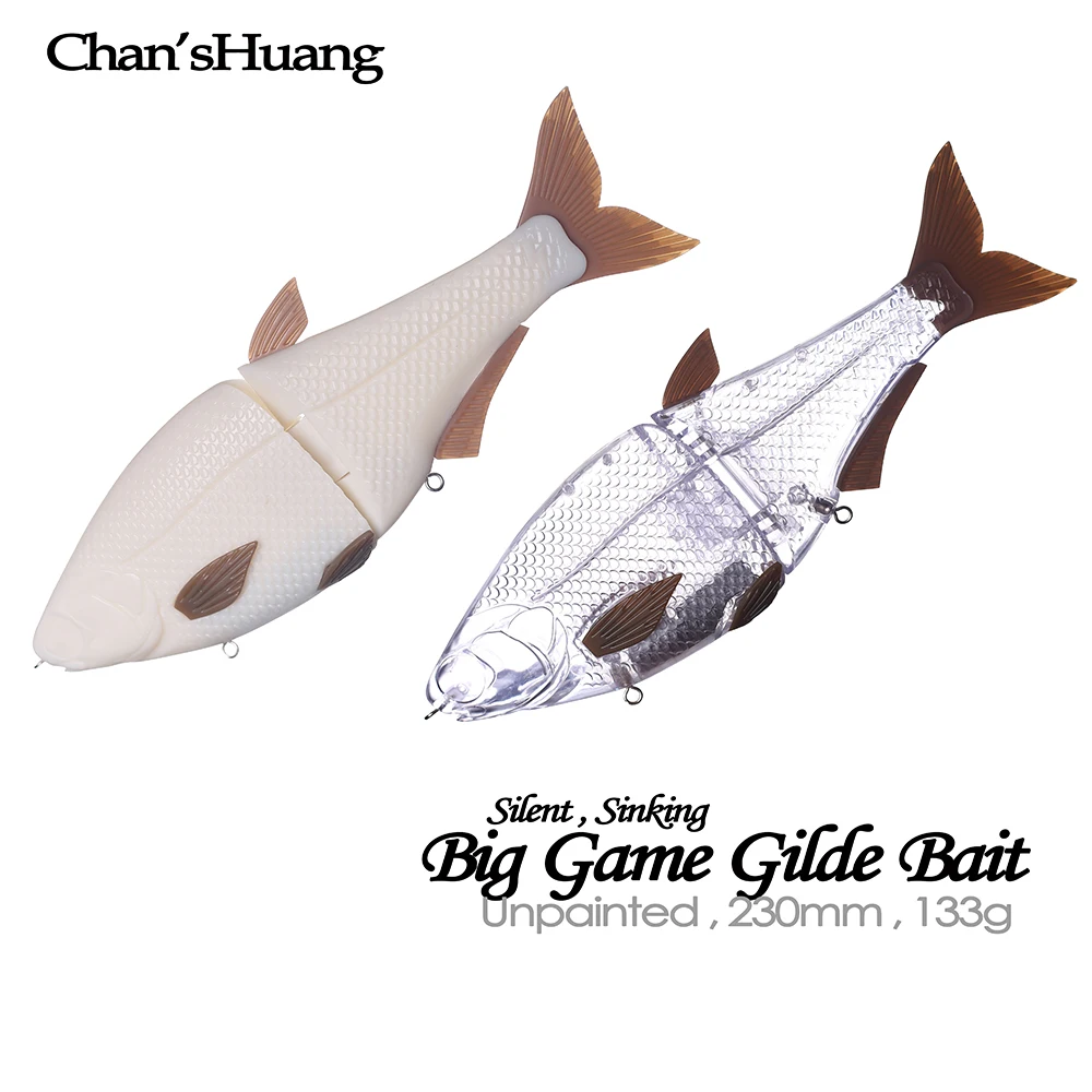 Chan'sHuang-Cebo en blanco sin pintar, señuelo de pesca Artificial, 23cm, 133g, hundimiento, cola suave, 1 unidad