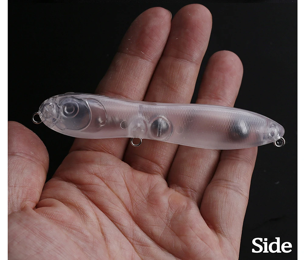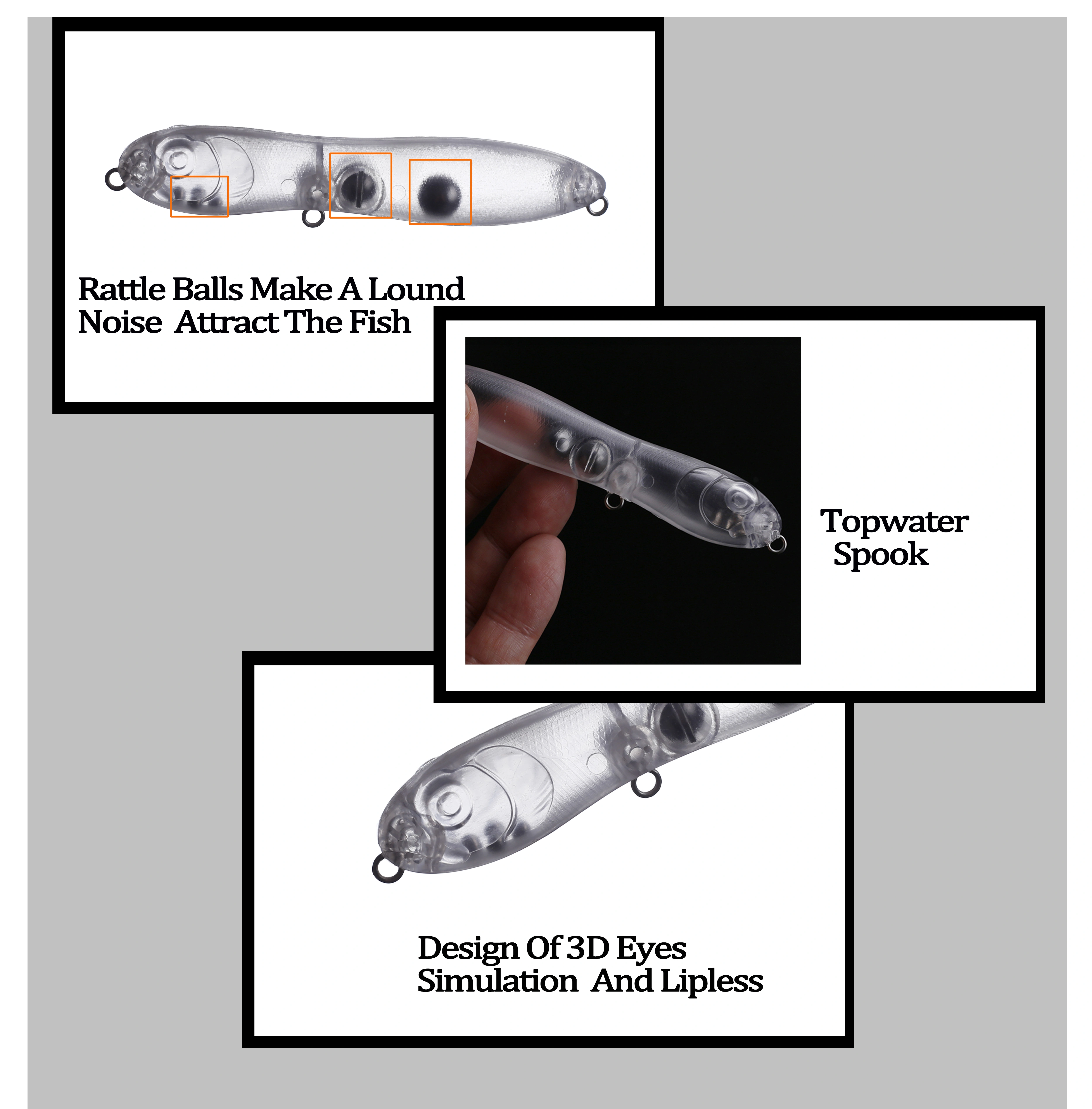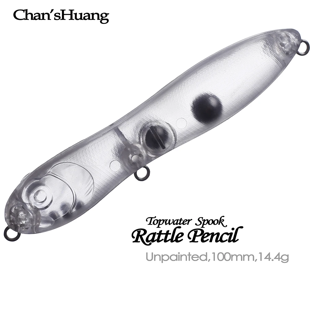 Chan'sHuang-lápiz flotante sin pintar, 20 piezas, Topwater Spook, 10CM, 14,4G, cuerpos transparentes, sonajeros para caminar, señuelo en blanco DIY