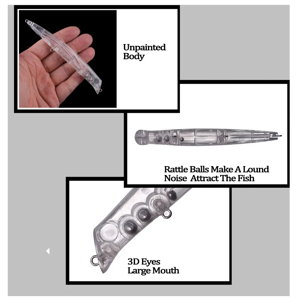 Chan'sHuang, cebo en blanco sin pintar, 13CM, 12,6G, sonajero Topwater Walker, Popper transparente, señuelo de pesca Artificial DIY