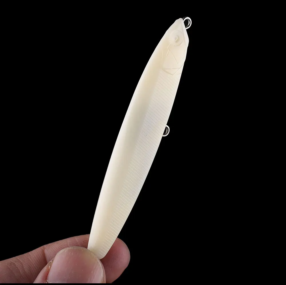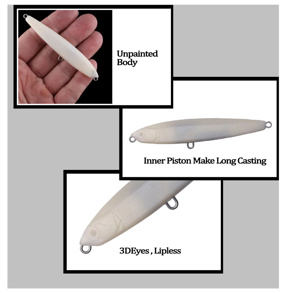 Chan'sHuang-señuelo de pesca Artificial, cebo en blanco sin pintar de 8/8, 5cm, pistón incorporado, largo fundido a lápiz, modelo de señuelo para caminar al perro