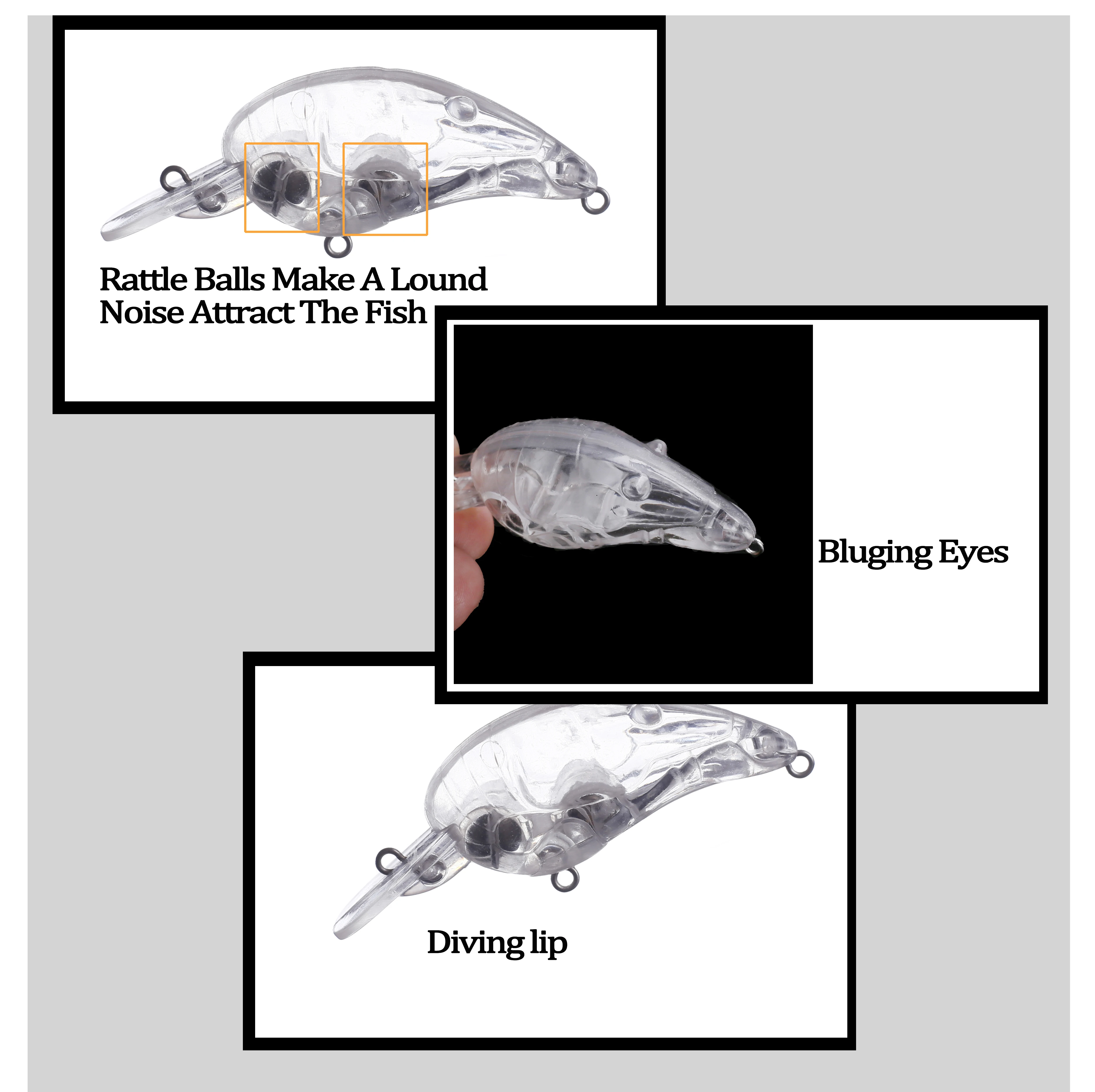 Chan'sHuang sin pintar, 70mm, 10G, Crankbait Wobbler, Mini señuelo de pesca transparente DIY, manivela de cuerpos en blanco