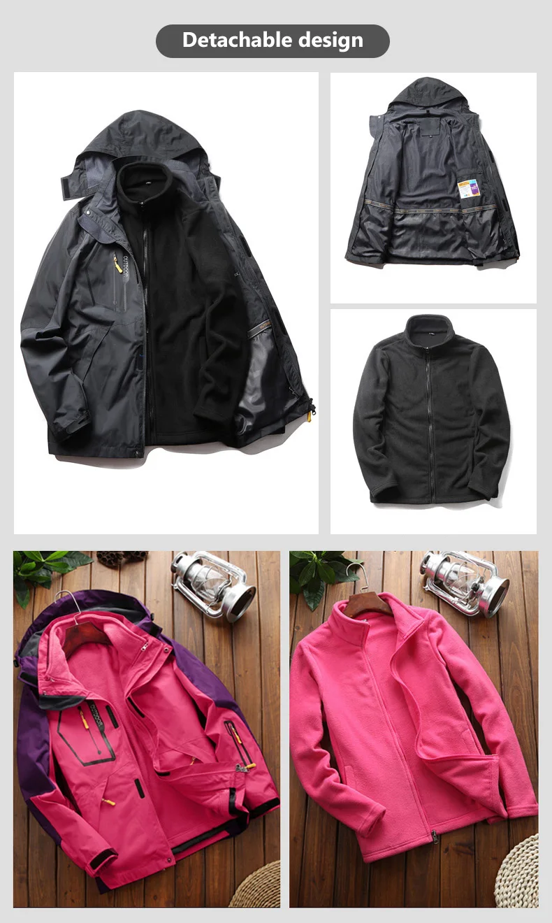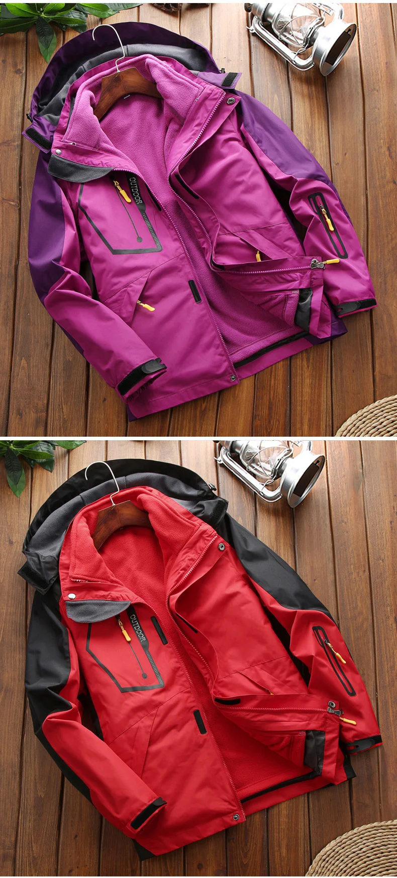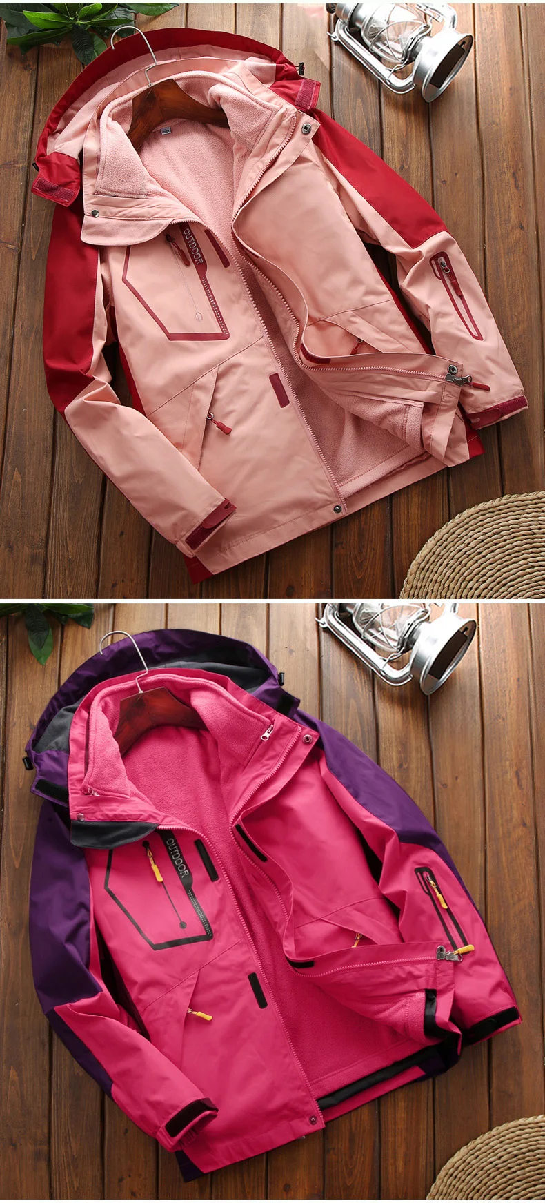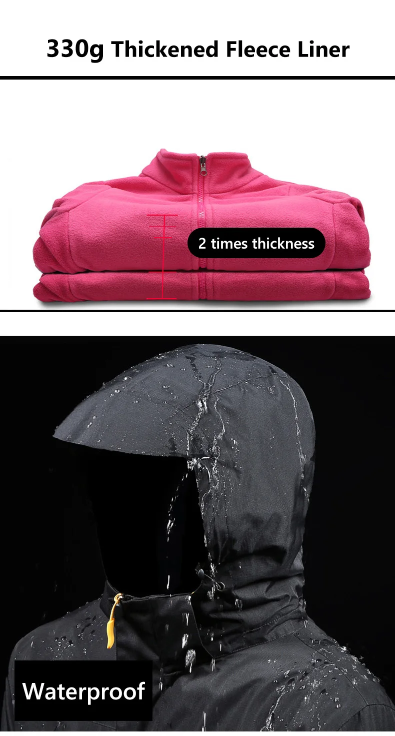 Chaqueta con capucha para mujer, abrigo 3 en 1 desmontable, impermeable, 3 en 1, para senderismo, Camping, Otoño e Invierno