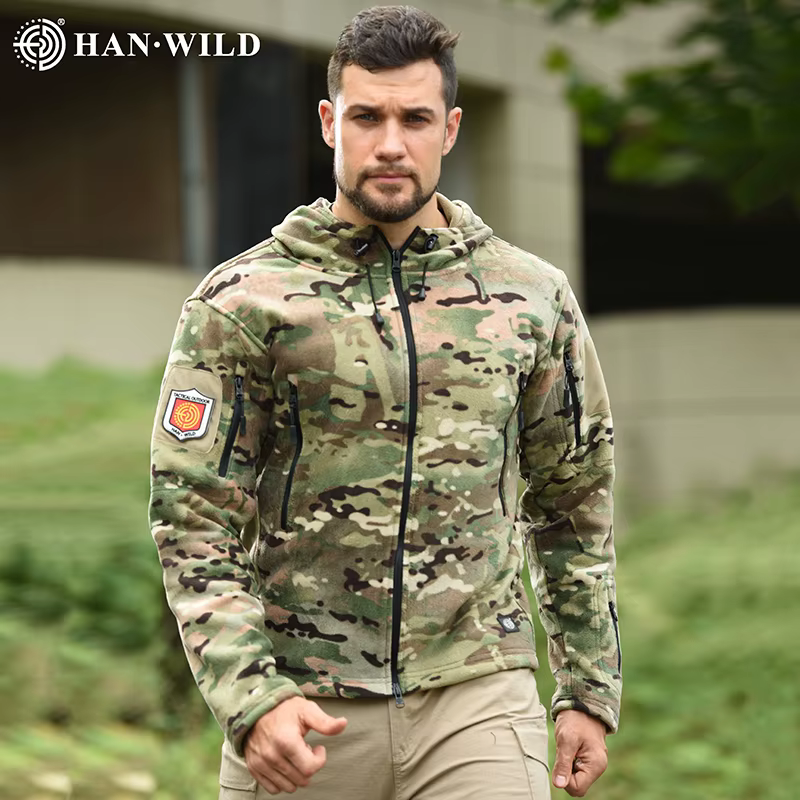 Chaqueta táctica de forro polar con cremallera completa para hombre, chaqueta militar, abrigo informal suave con capucha para acampar, ropa térmica para exteriores, cortavientos
