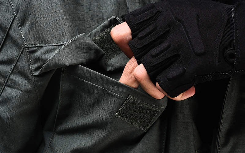 Característica:1. Las tapas se pueden plegar2. Cremallera duradera de alta calidad, suave.3. Cremallera con cierre de gancho y bucle, doble protección,4. Sujetador de gancho y bucle en el brazo, pegue cualquier señal que necesite.5. Cierre de gancho y bucle de puño, el puño es ajustable, a prueba de viento6. Cremallera dobladillo de apertura rápida con hebilla magnética7. Costuras ajustadas, mano de obra exquisita8. Tejido resistente a la abrasión y a los arañazos, ultraligero y resistente al viento9. Diseño multibolsillo, un total de 10 bolsillos: 6 bolsillos en la parte delantera exterior, 2 bolsillos en las mangas y 2 bolsillos en el interior.10. Almohadilla de codo extra gruesa, más gruesa y usable.11. Cintura ajustable con banda elástica oculta