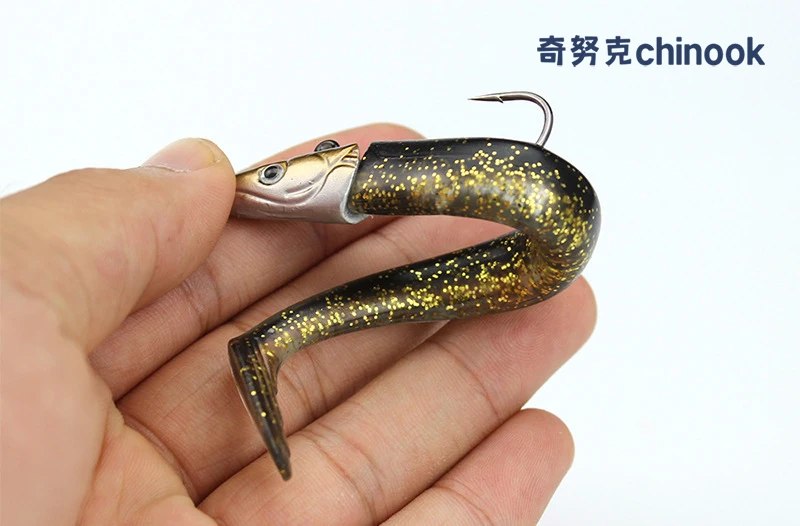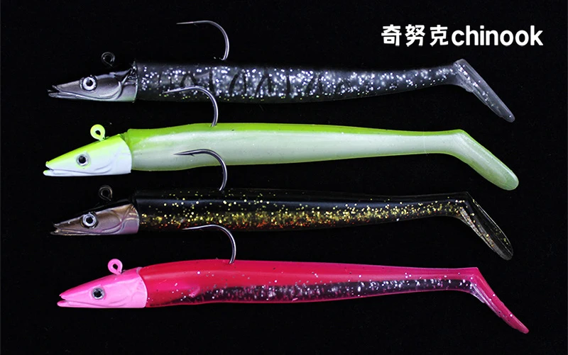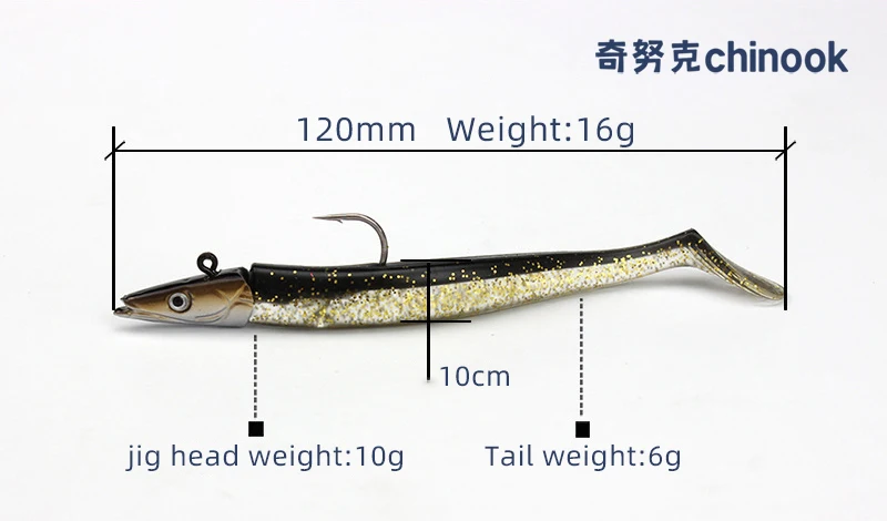 Chinook-Cebo blando de 120mm y 16g, señuelo de hundimiento con cabeza de pez, gusano, pesca de silicona, cebo Artificial
