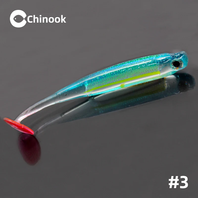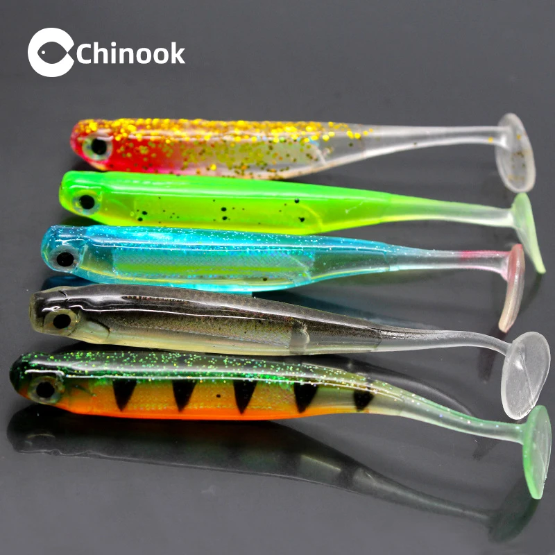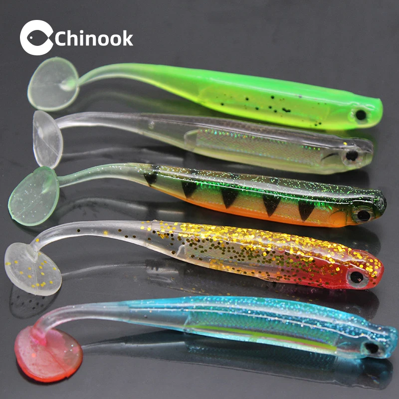 Chinook señuelo de cebo blando, cola en t, 70/90mm, 5 unidades