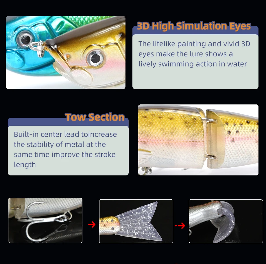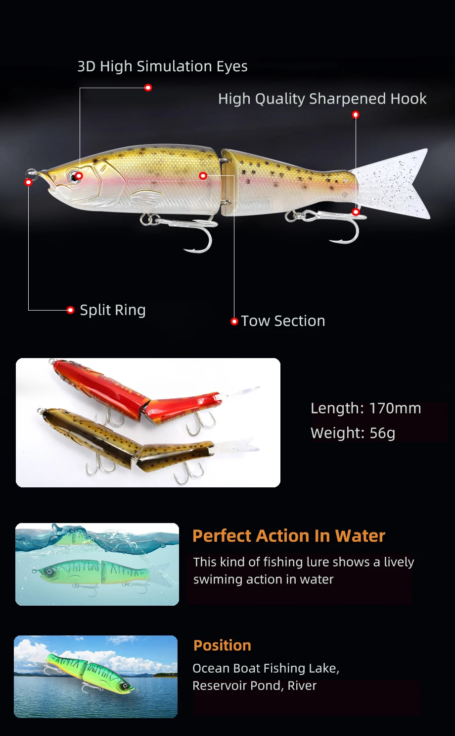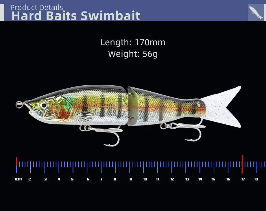 Chinook-señuelo de pesca de 170mm, 56g, Wobblers de pececillos articulados, cuerpo ABS con cola suave, SwimBaits, señuelo suave para lucio y lubina