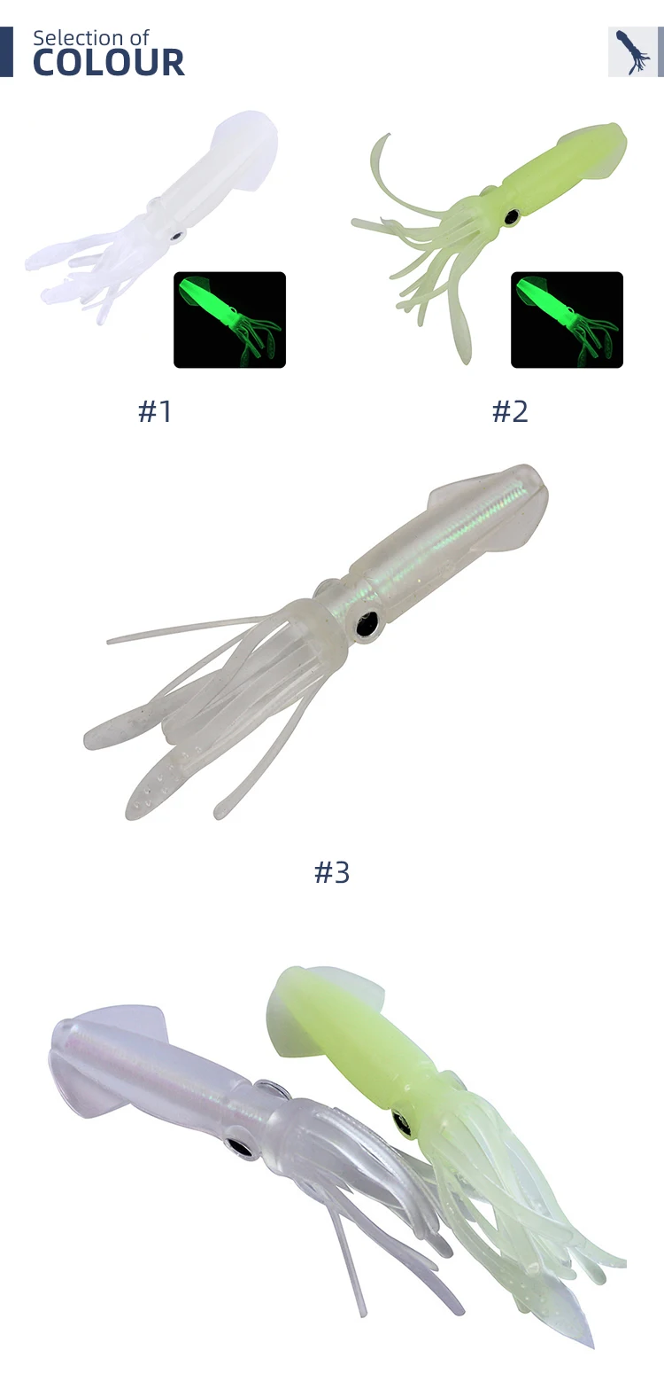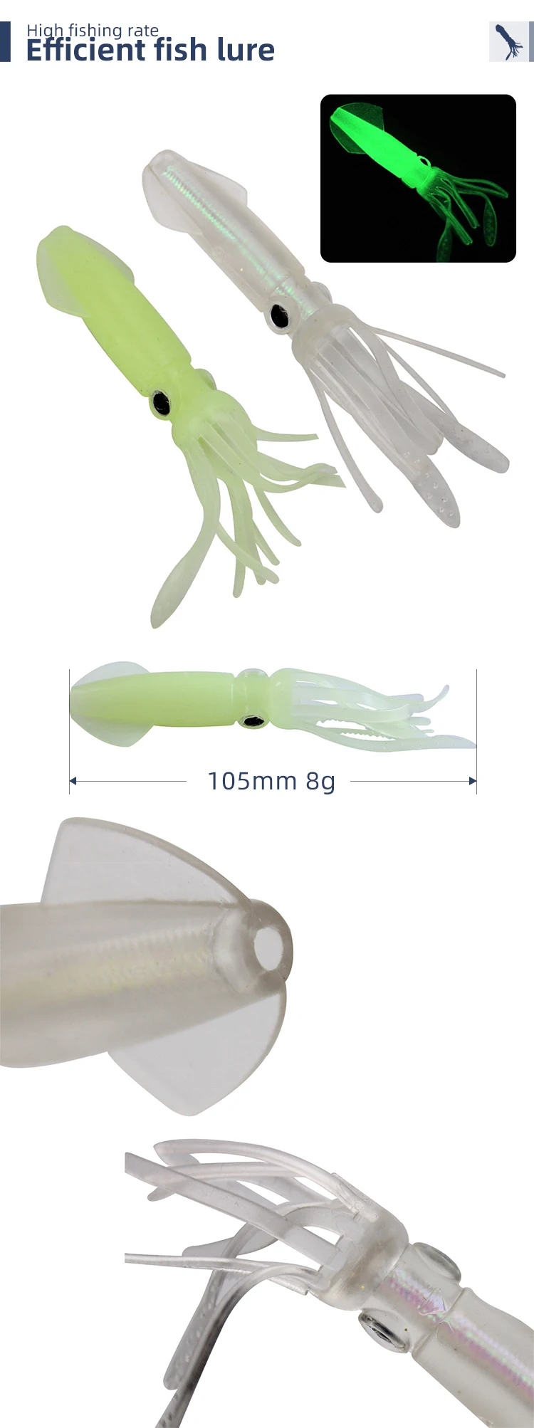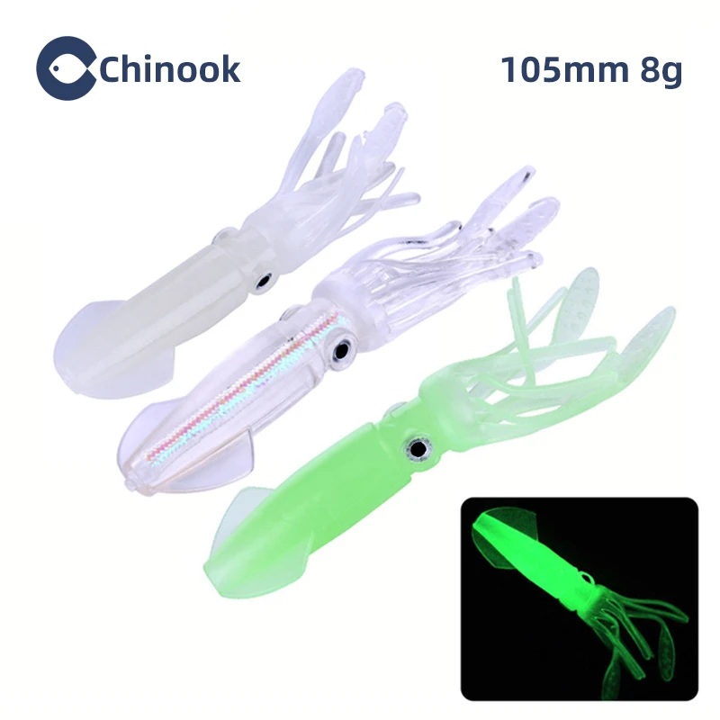 Chinook-señuelo de Pesca suave de pulpo, 8g de silicona, señuelo de Pesca de Mar, calamar luminoso grande, cebos suaves, señuelos falsos, aparejos de Pesca