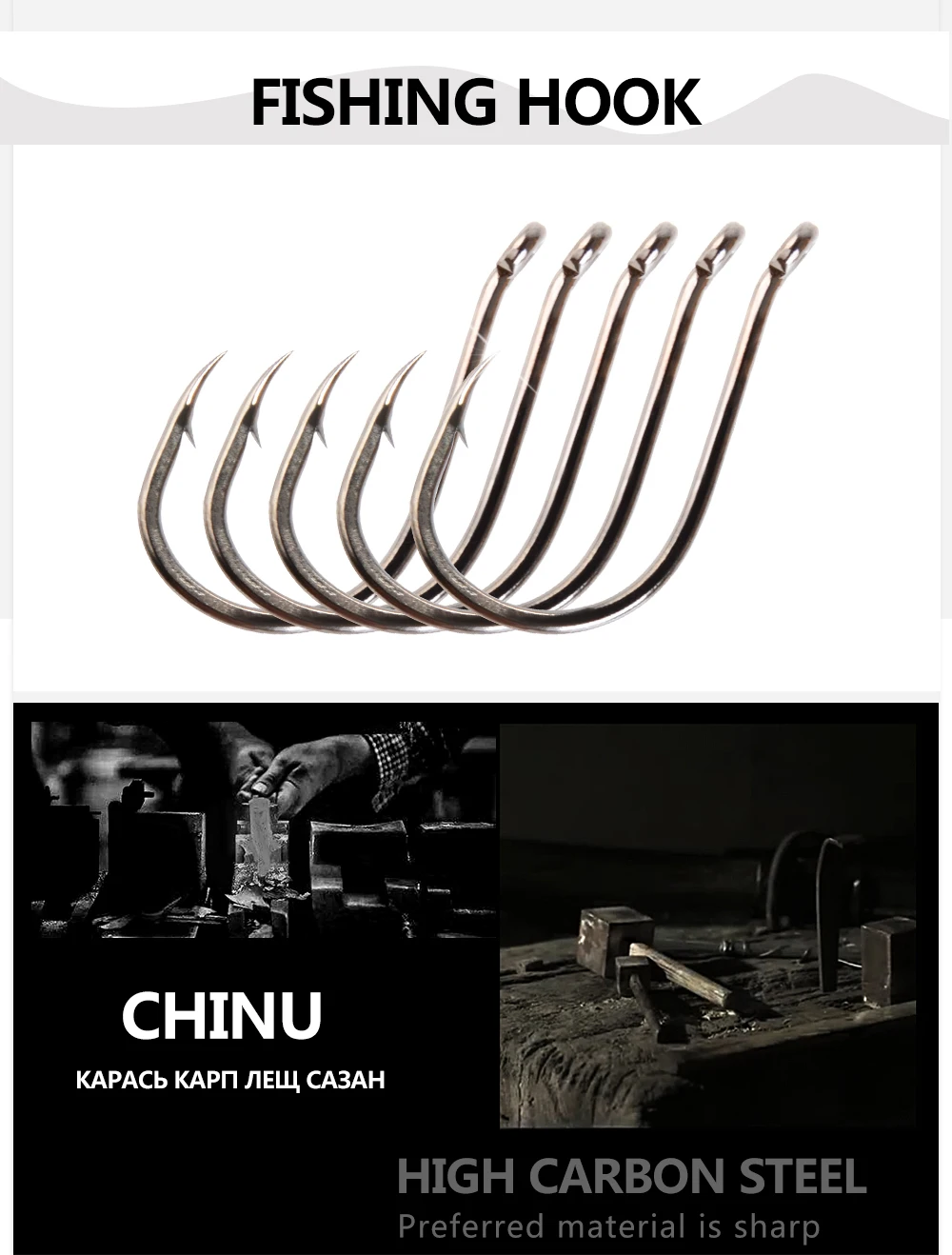 CHINU-anzuelo de pesca de carbono con ojo, aparejo de pesca de carpa, bagre, anzuelo de pesca, n. °-14, n. ° 1/0, 5 uds.-10 Uds.