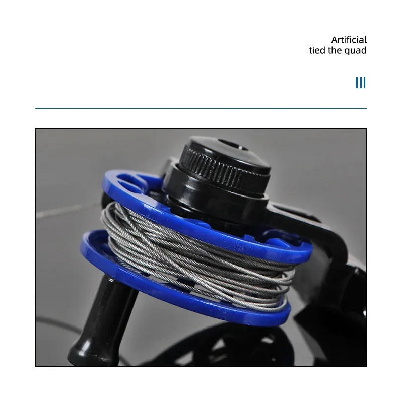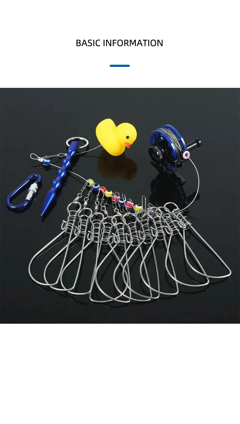 Cordón de acero, lo suficientemente largo como para atar y aún así mantener a los peces en el agua, dejándolos vivos y frescos mucho más tiempo.