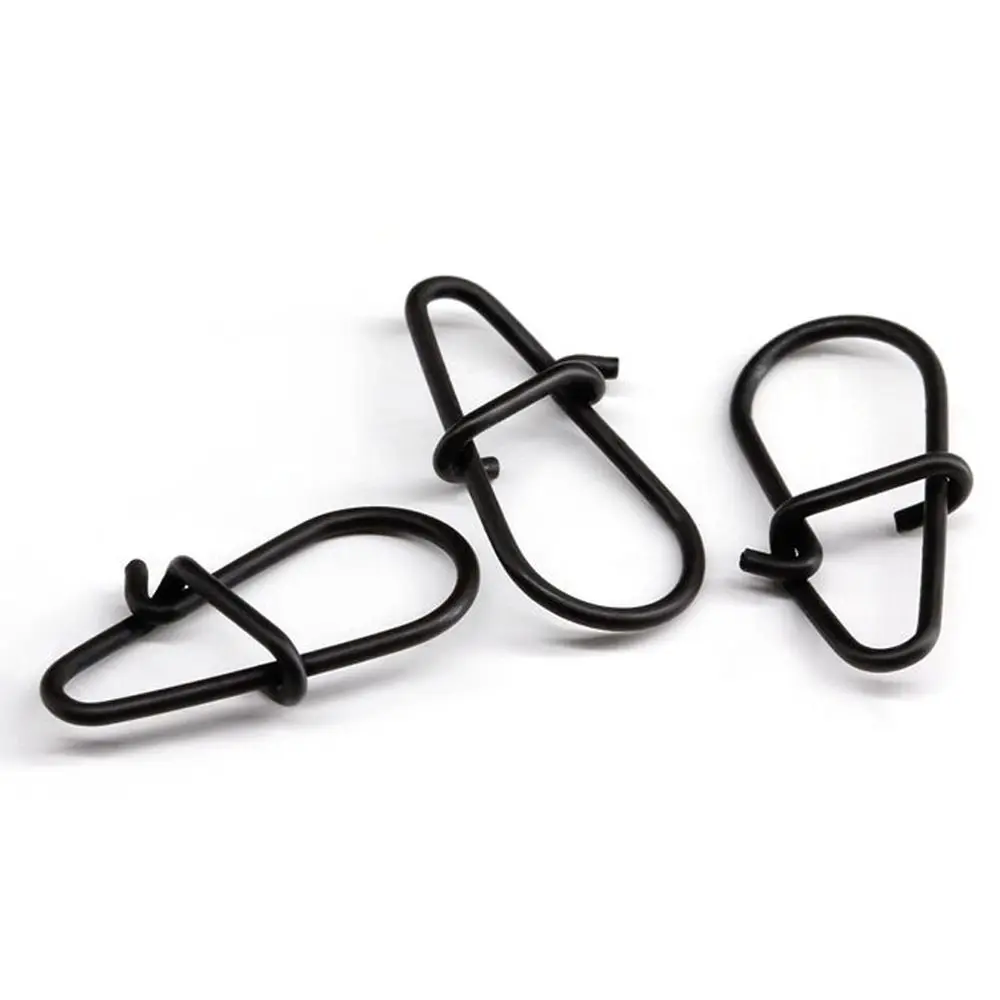 Cierre rápido de acero inoxidable, aparejos de línea duraderos, broche colgante de pesca, anillos divididos ovalados, conector giratorio de barril, color negro mate