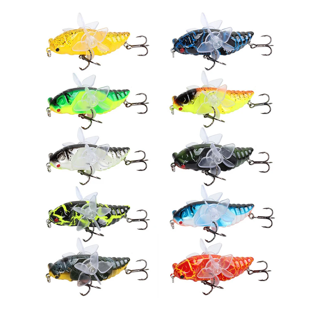 Las alas de hélice doble rotacional ayudan a que el señuelo flote en el agua, lo que hace que otros peces lo muerdan.