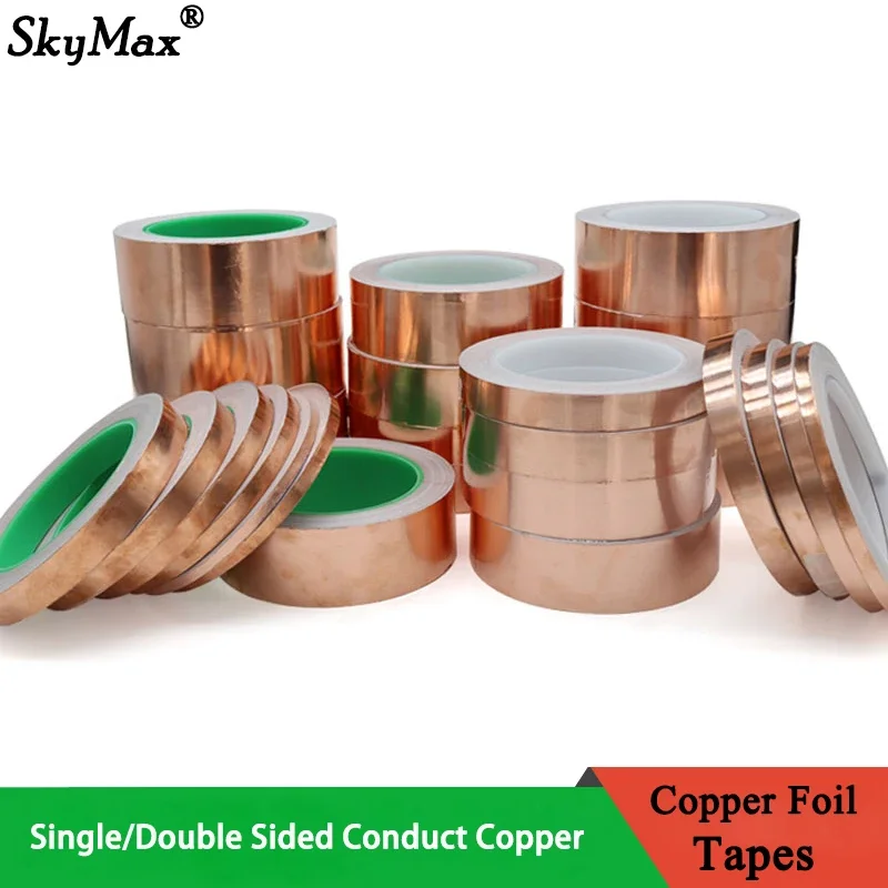 Cinta adhesiva conductora de lámina de cobre, 20m/rollo, 5/6/8/10/15/20/25/30/35/40/45/50/60mm, cintas de reparación eléctrica de una/doble cara