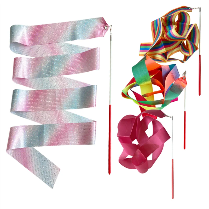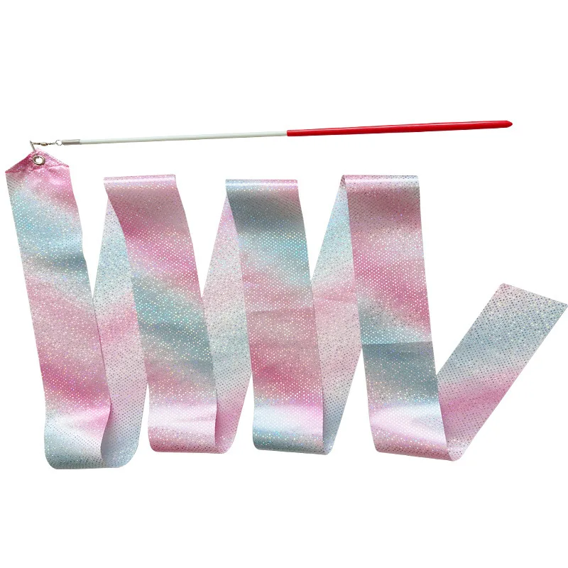 Cinta de baile de Ballet y gimnasia artística, 1/2 Uds., 2M, con palo giratorio, brillo parpadeante para niños, tira de rendimiento deportivo, utilería para espectáculo en escenario