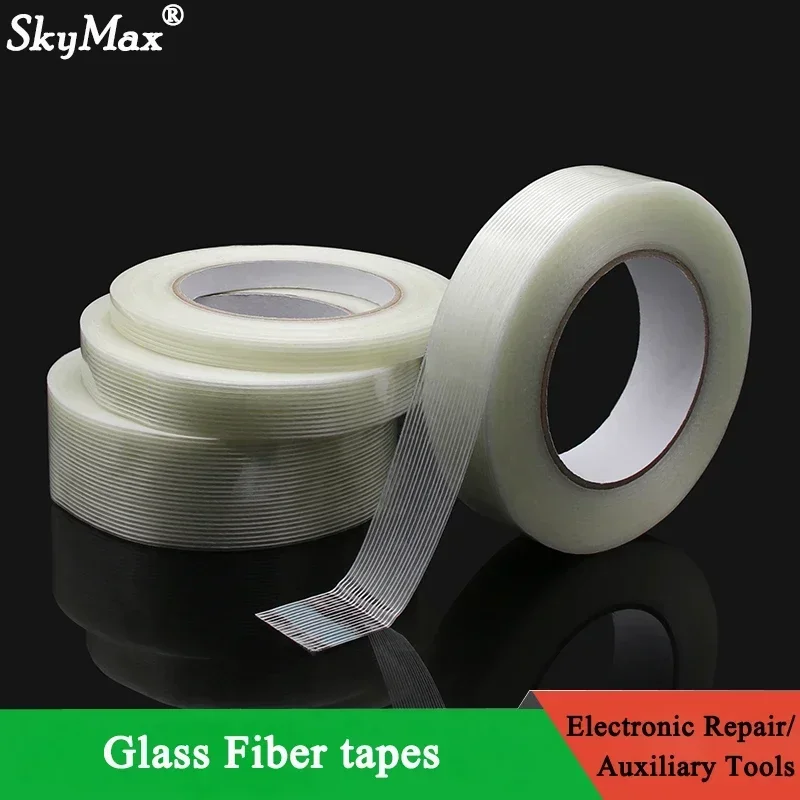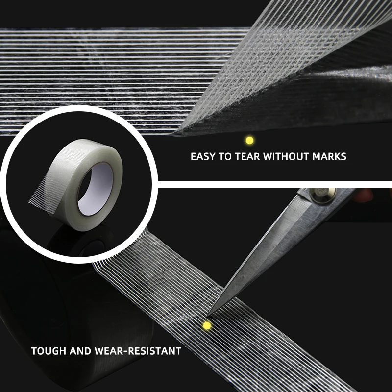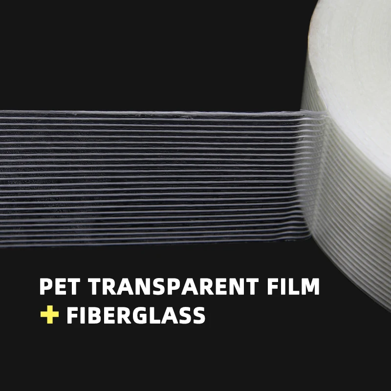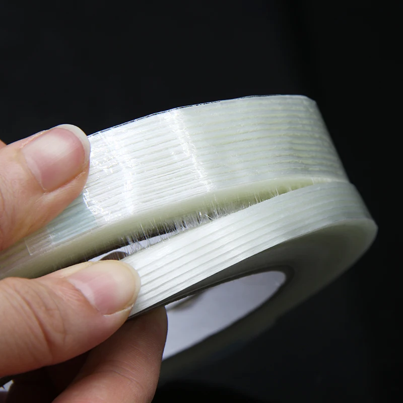 Cinta de fibra de vidrio de 50m, embalaje de flejado Industrial de fuerte viscosidad, sello fijo, cintas adhesivas de un solo lado a rayas transparentes