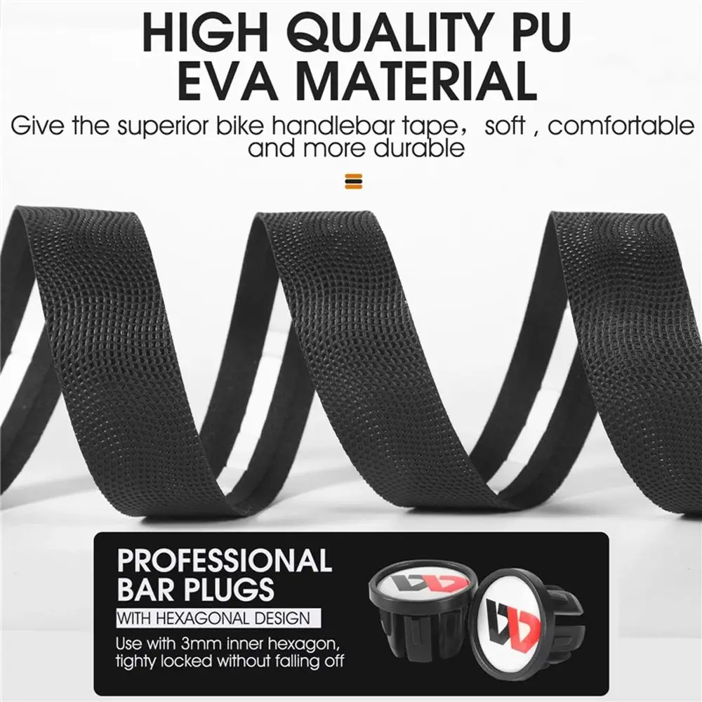 Tamaño: largo 2150mm, ancho 30mm, espesor 2,8mm Material: EVA + PU Color: negro, rojo, blanco, azul, verde Cantidad: 1 juego Paquete: 2 cinta de manillar de 2 + 2 enchufes de manillar + 2 cintas de fijación Características: 1. Ligero y suave. 2. La Correa alargada del manillar puede aumentar el ancho de bobinado y el número de vueltas de la correa del manillar de acuerdo con las preferencias de cada ciclista. 3. Material de espuma EVA gruesa y elástica de alta calidad, respetuosa con el medio ambiente, absorción de impactos y amortiguación, cómoda y transpirable, de alta elasticidad. La dureza es buena, no es fácil de romper, el tacto se siente bien y es resistente al envejecimiento, lo que permite al ciclista reducir la sensación de baches que trae la carretera. 4. La parte posterior contiene adhesivo, lo que hace que la cinta sea más estable después del bobinado, antideslizante y segura.