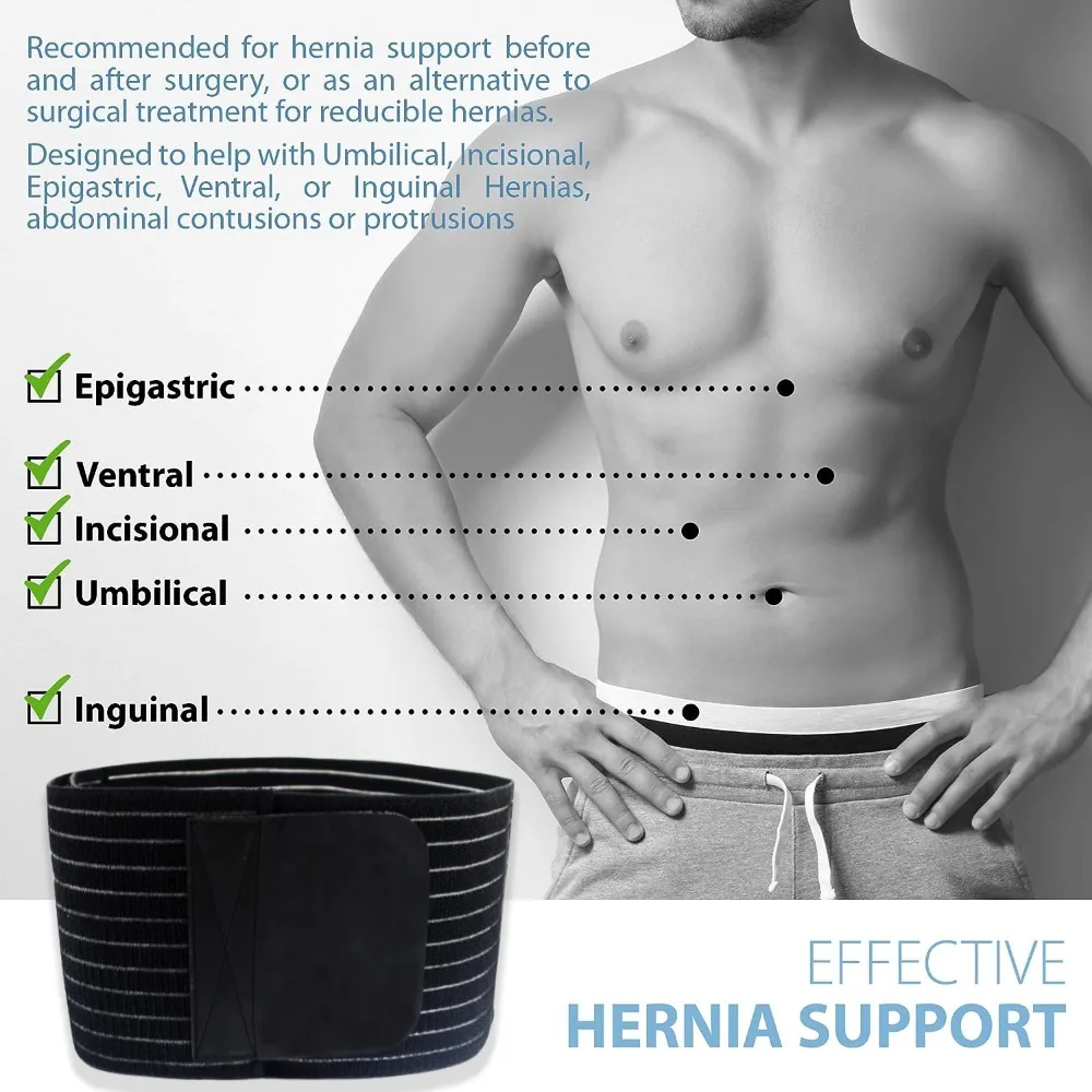 1. EFFECTIVE HERNIA SUPPORT: Recommended for hernia support or as an alternative to treatment for reducible hernias. Designed to help with Umbilical, Incisional, Epigastric, Ventral, or Inguinal Hernias , abdominal contusions or protrusions, hernia belts for men stomach adjustable, waist band for men.