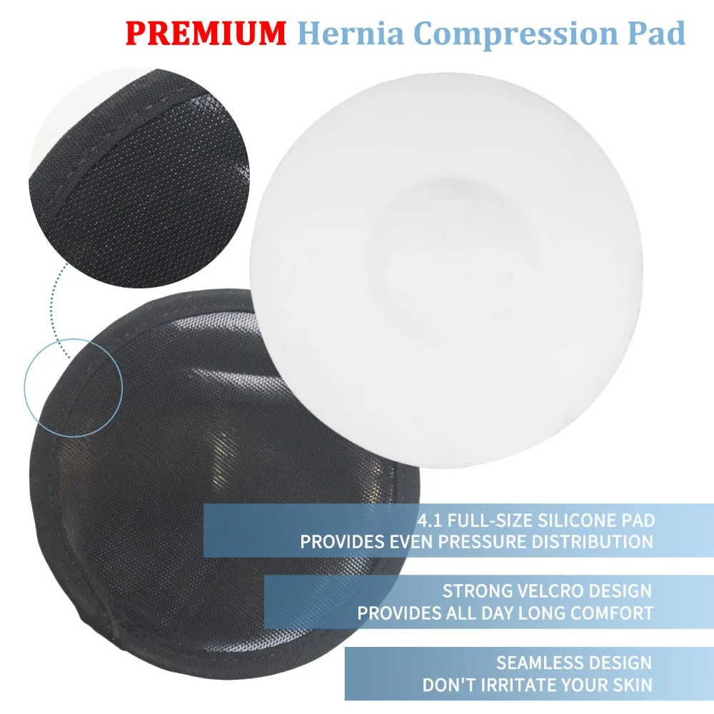 4.CARACTERÍSTICAS INNOVADORES PARA UN EFECTO MAXIMIZADO: La construcción de la tela permite que el cinturón se ajuste a la forma del cuerpo y proporcione una compresión cómoda.La almohadilla de silicona extraíble con forro suave y una capa adhesiva ejerce presión localizada sobre la hernia y se puede colocar en cualquier parte del cinturón.El cierre de gancho y bucle del armazón permite un ajuste y compresión controlados.