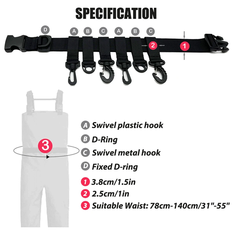 Cinturón de caña de pescar multifunción, equipo táctico al aire libre, con gancho extraíble, portátil