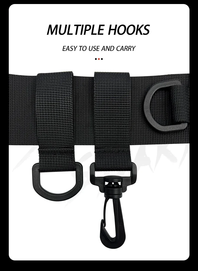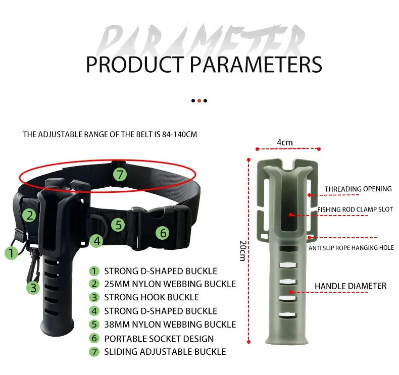 【Caña de pescar】:Este soporte para caña de pescar con cinturón puede liberar su mano cuando quiera coger el señuelo o soltar los peces durante su tiempo de pesca. Diseño especial para caña giratoria o de fundición. Y hay dos hebillas con las que puede llevar su herramienta de pesca fácilmente.