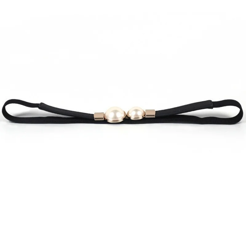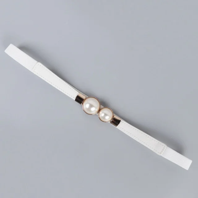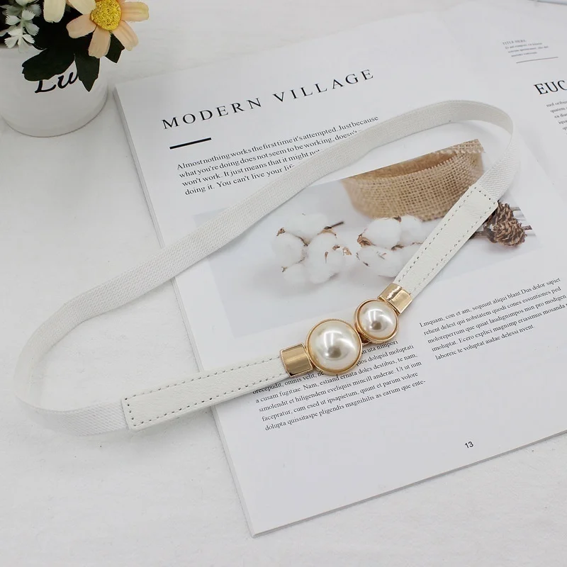 Cinturón con hebilla de perla creativo, vestido de cuero PU, falda, cintura elástica, cinturones finos para mujer, pretina para mujer