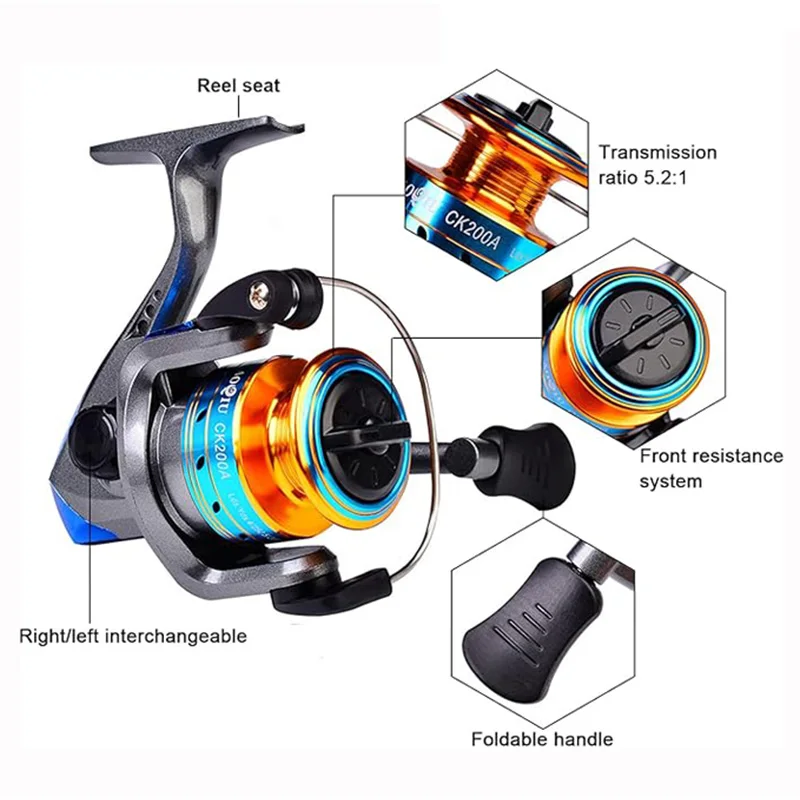 CK200-carrete giratorio 5,2: 1, Ratio de engranaje con línea 3BB duradera, portátil, ligero, perfecto para pescadores al aire libre, 1 unidad