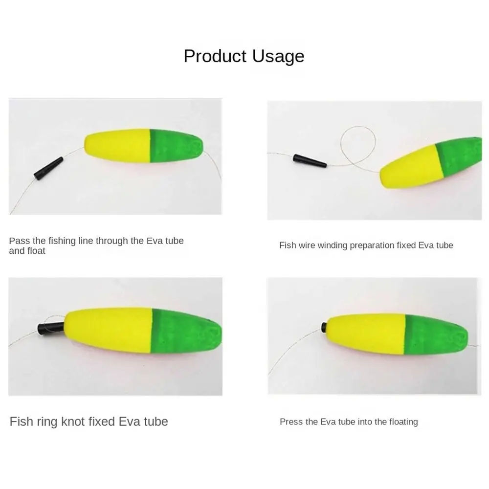 El pontón con forma de clavo de material de alta calidad está hecho de espuma de textura estrecha duradera, con clavos con agujeros de pequeño diámetro, que pueden fijar la profundidad o la pesca en tobogán. Hay tapones de tubería de plástico, sin necesidad de ranurar. Los flotadores son flotadores en forma que flotan verticalmente en el agua, aumentando en gran medida su visibilidad.