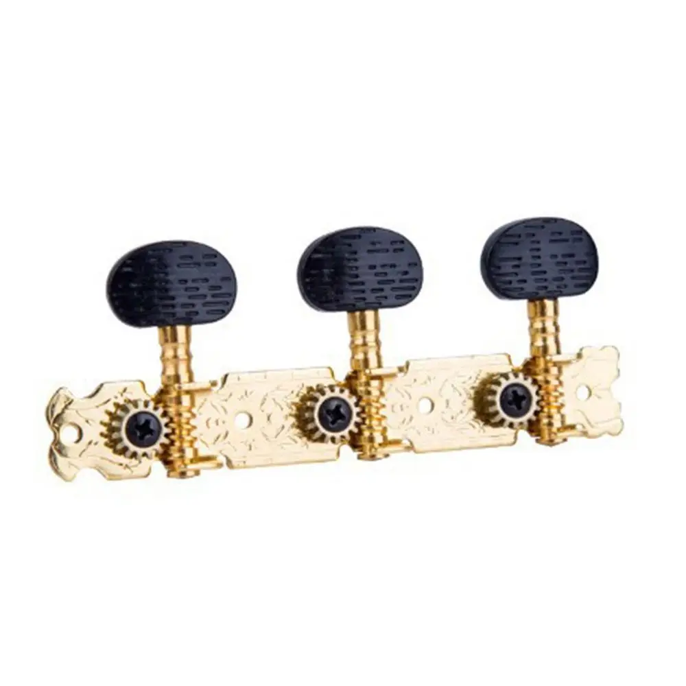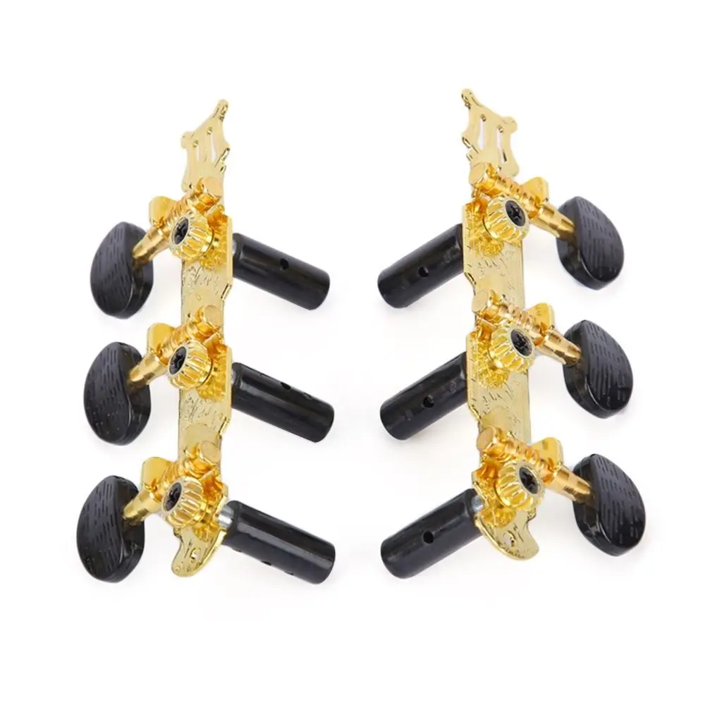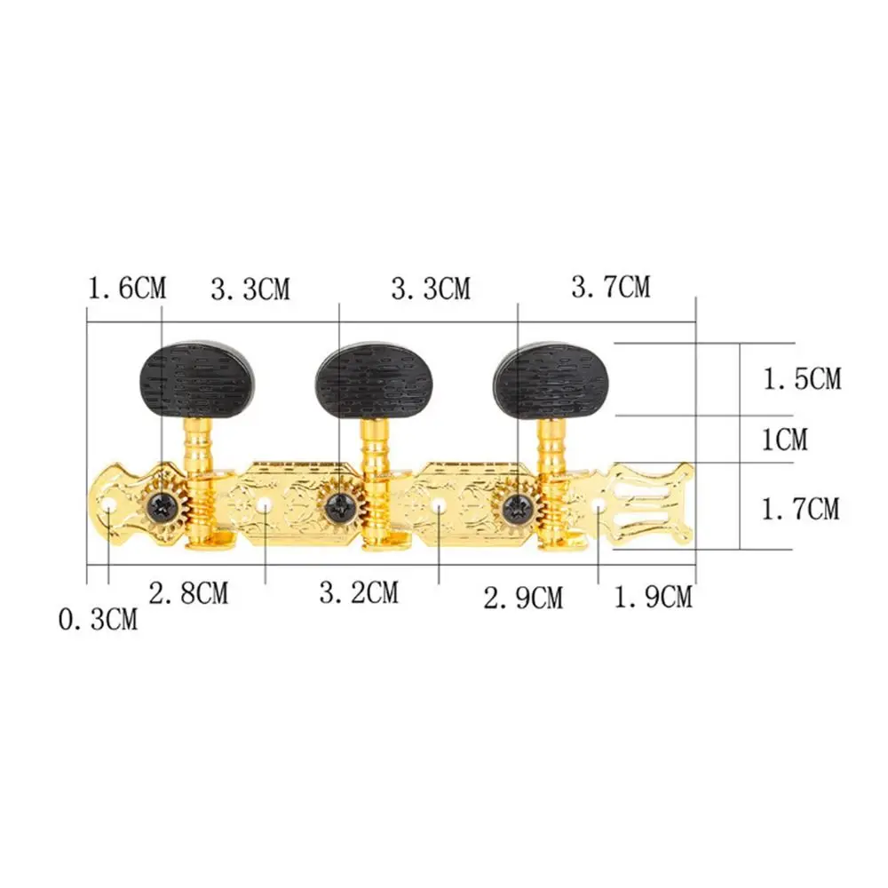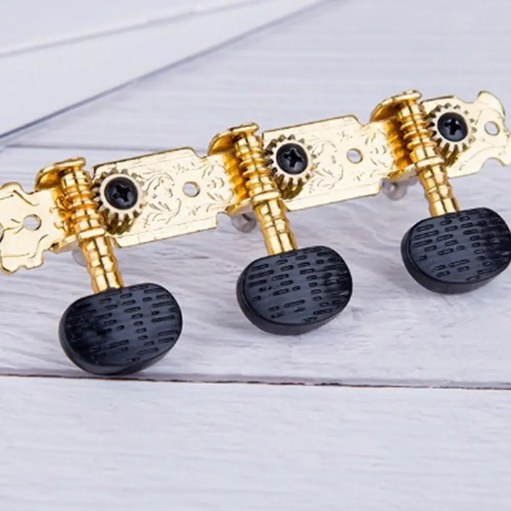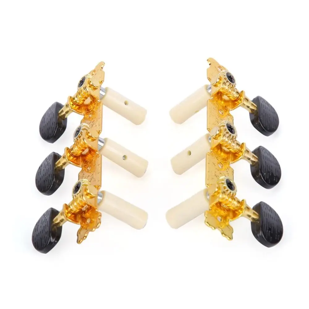 Item Type: Classical Guitar Tuning Pegs Material: Oval ABS plastic handle +a3 steel plate + easy cutting iron chord column + copper gear. Model: L+R Size: As the picture Color: Black,gold Suitable: for Classic Guitar Features: Good Quality: solid-built tuning pegs, made of zinc alloy material , with chrome finish, feature long-lasting and durable. Well Performance: tuners can hold the strings in place stably, turn smooth, allow the player to tune easily and accurately. Easy Installation: mounting screws and nuts, washers are included; it is ready for use, easy to install. Note: Guitar string tuning pegs only, other accessories in the pictures are not included. Due to lighting or other reasons, the picture and material object may slightly differ. Due to manual measurement, there may be deviation, please in kind prevail. Packing List: 2 * Guitar String Tuning Pegs