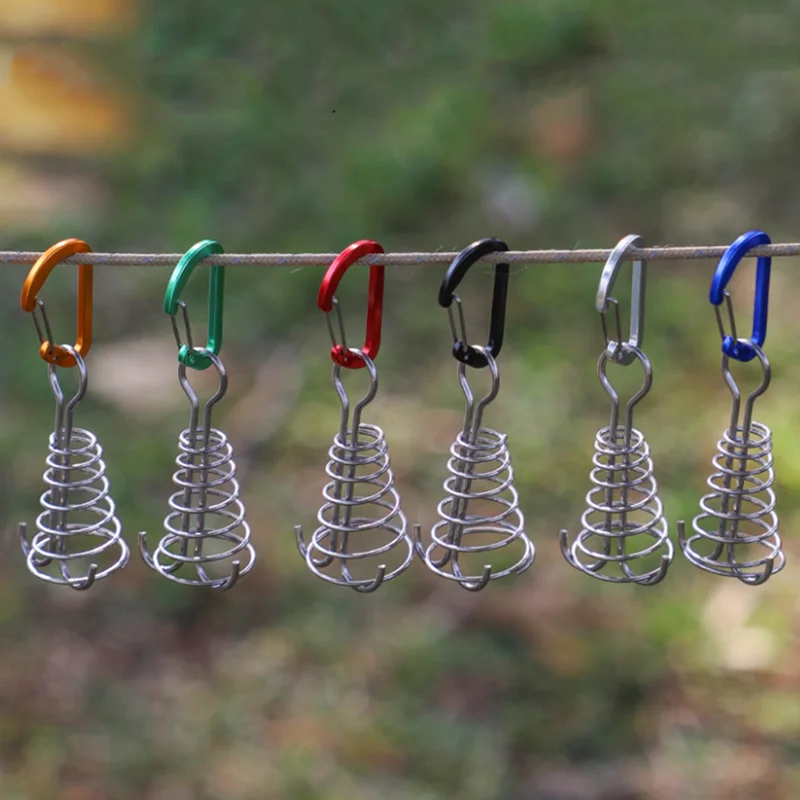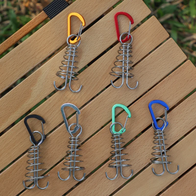Clavo para cubierta de acampada, hebilla de cuerda fija de acero inoxidable para tienda de campaña, gancho de madera, cuerda de viento de resorte, hebilla de cuerda de pulpo para acampar al aire libre